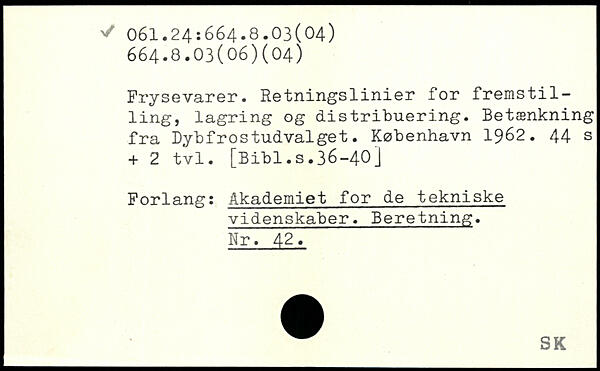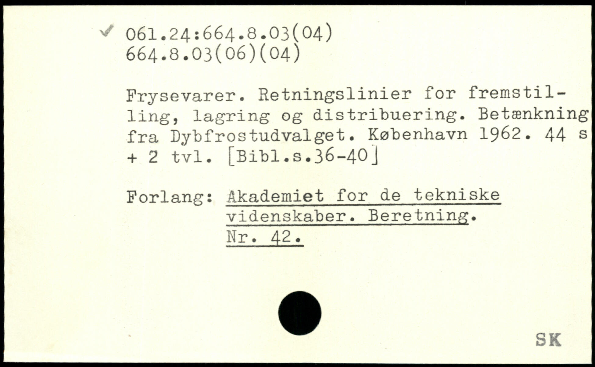 Frysevarer. Retningslinier for fremst1111ng, lagring og distribuering. Betænkning fra Dybfrostudvalget.
