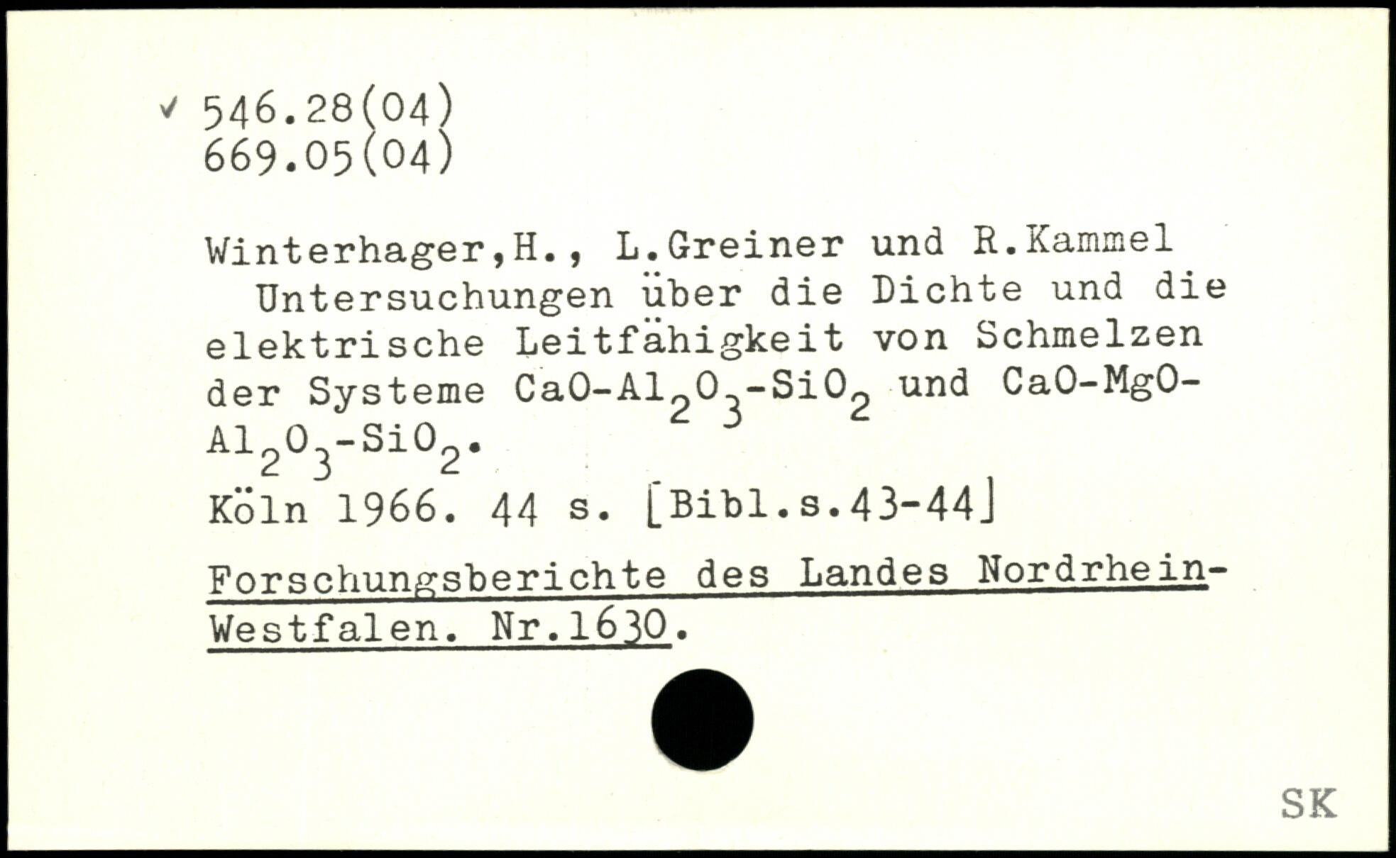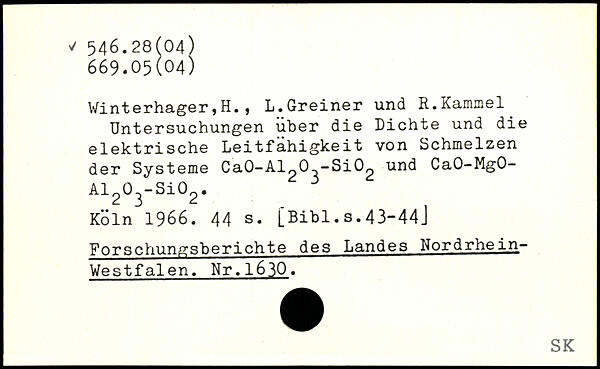 Winterhager,H., L.Greiner und R.Kammei Untersuchungen uher die Dichte und die elektrische Leitfähigkeit von Schmelzen der Systeme Ca0-Al20 -Si02 und CaO-MgO-A1203-Si02.