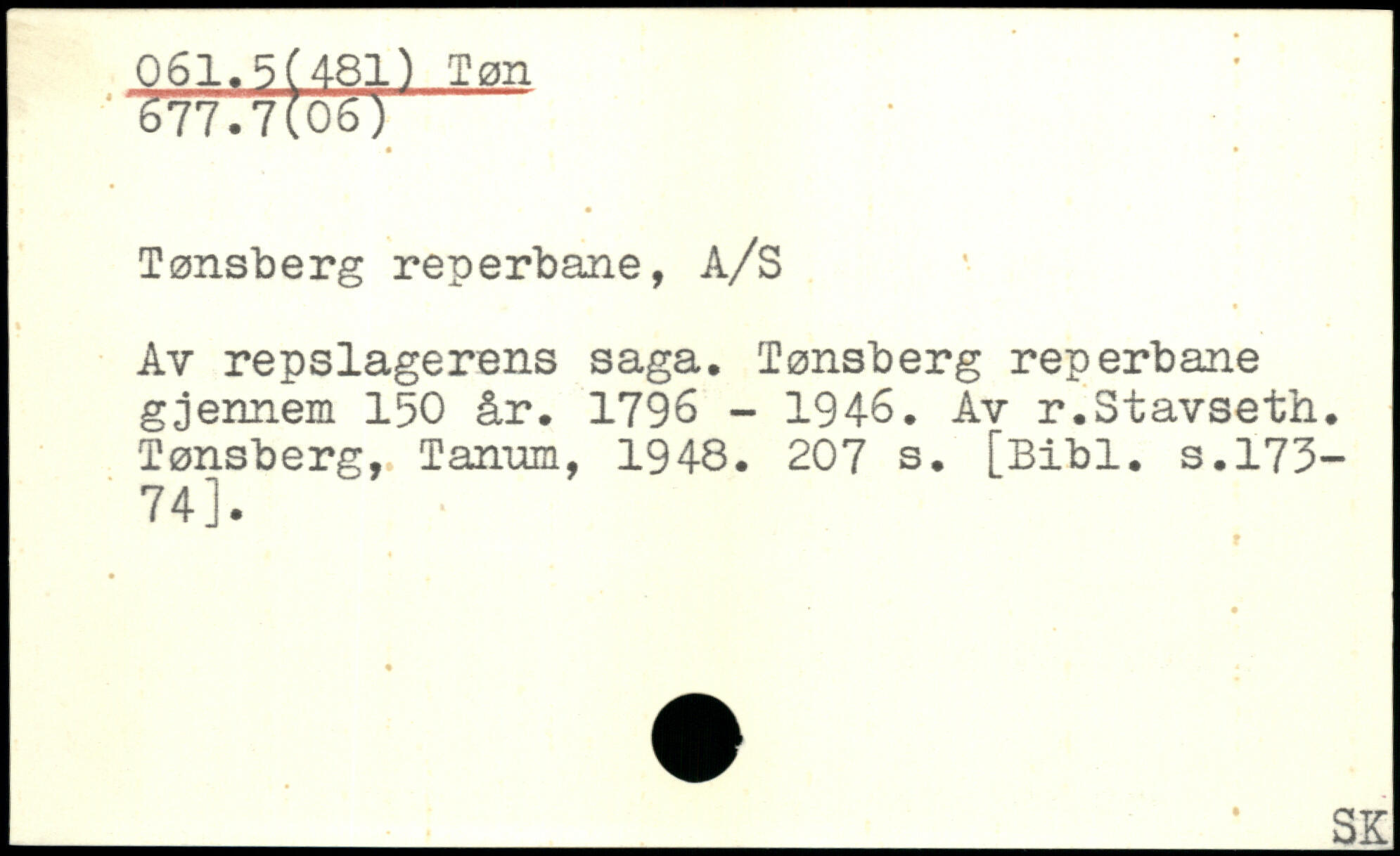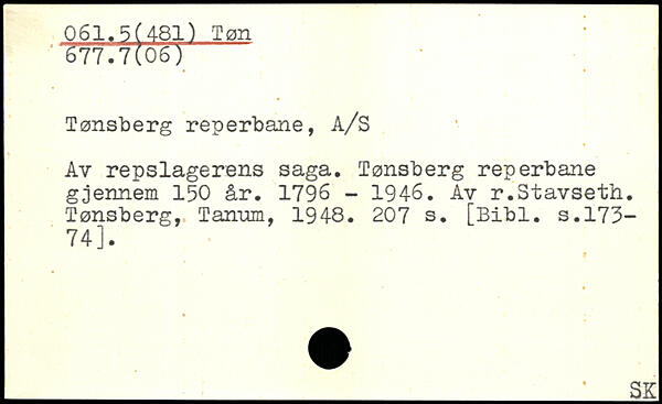 Tønsberg reperbane, A/S Av repslagerens saga. Tønsberg reperbane gjennem 150 år. 1796 - 194-6. Av r.Stavseth.