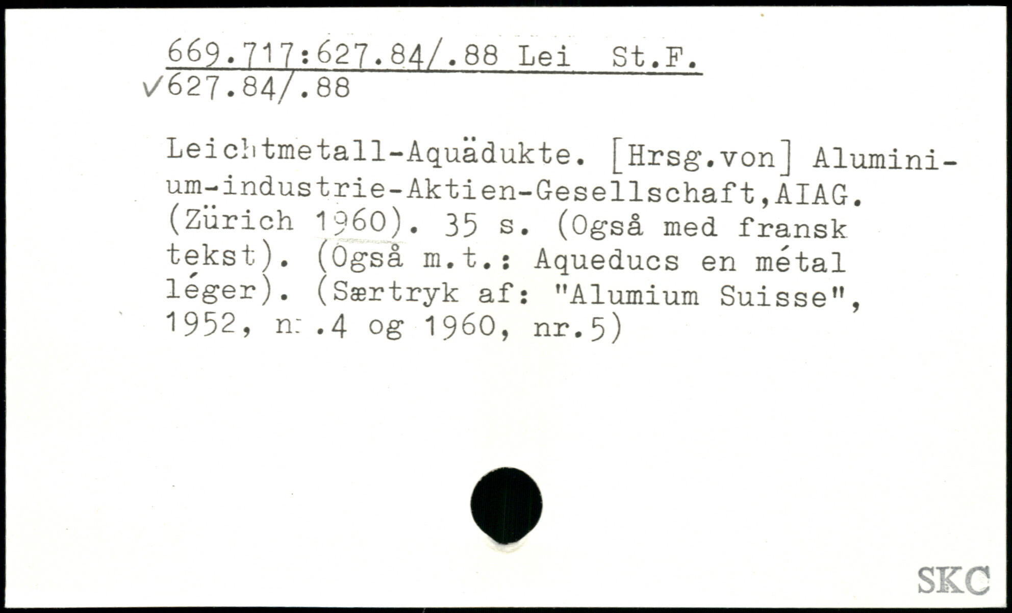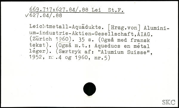 Leichtmetall-Aquädukte. [Hrsg.von] Aluminium- industrie-Aktien-Gesellschaft,AIAG. (Zürich 1960).
