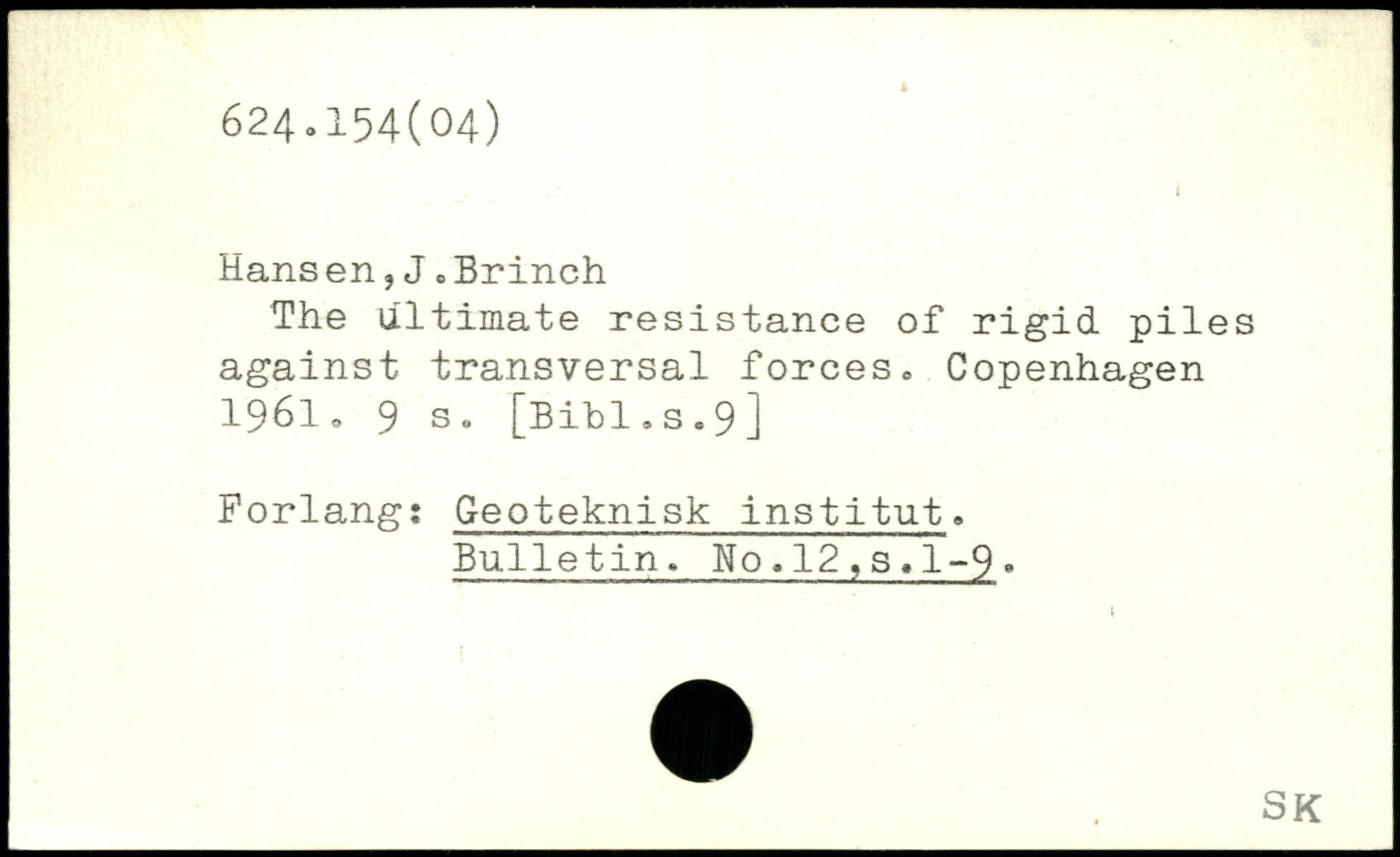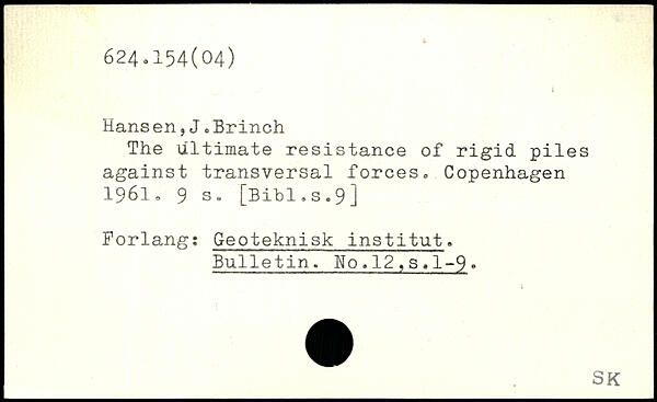 Hans en,J.Brinch The ultimate resistance of rigid piles against transversal forces.