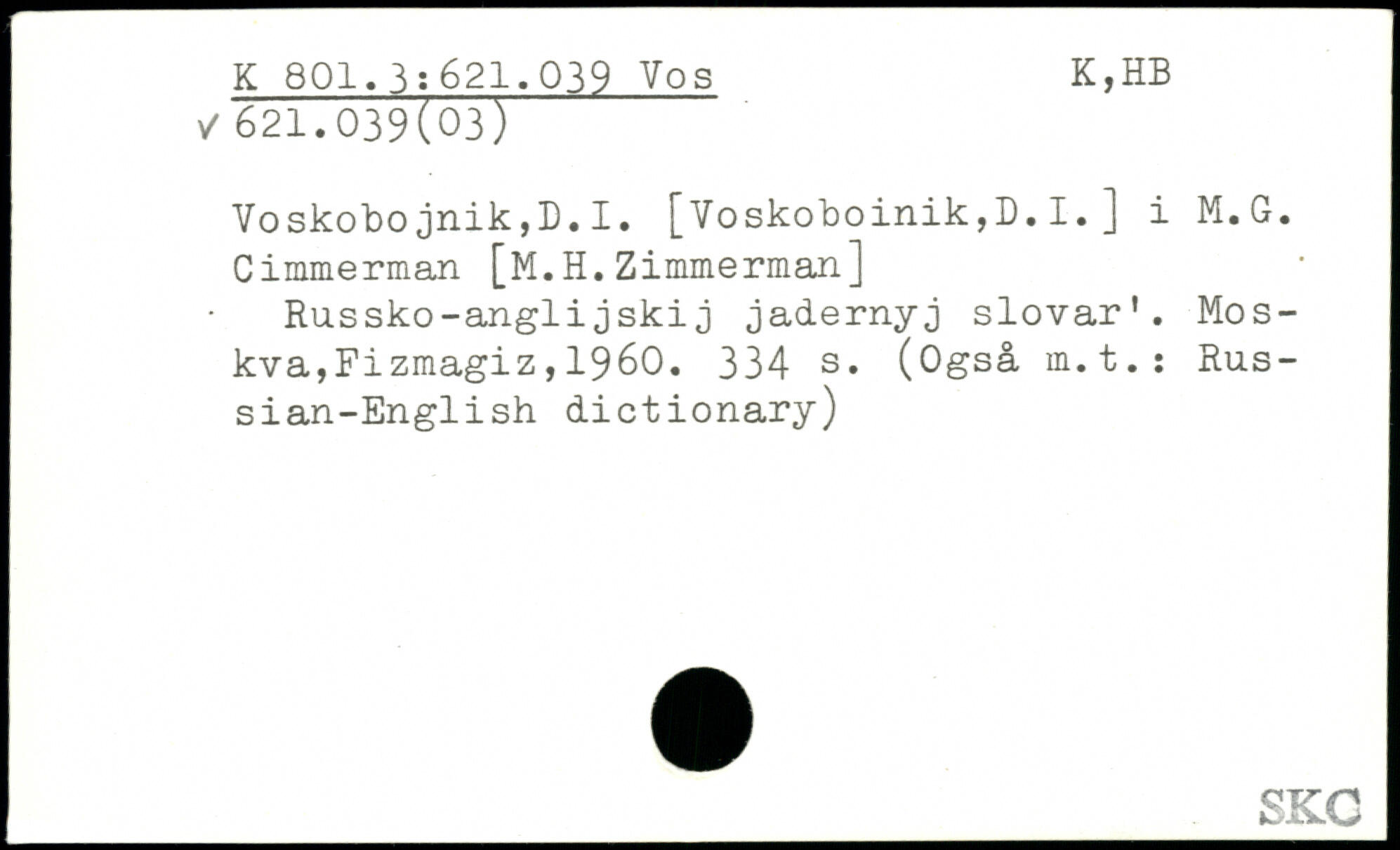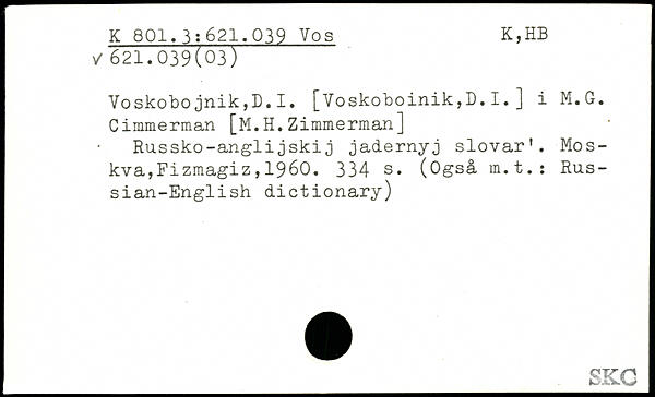 Voskobojnik,D.I. [Voskoboinik,D.I.] i M.G. Cimmerman [M.H.Zimmerman] Russko-anglijskij jadernyj slovar’.