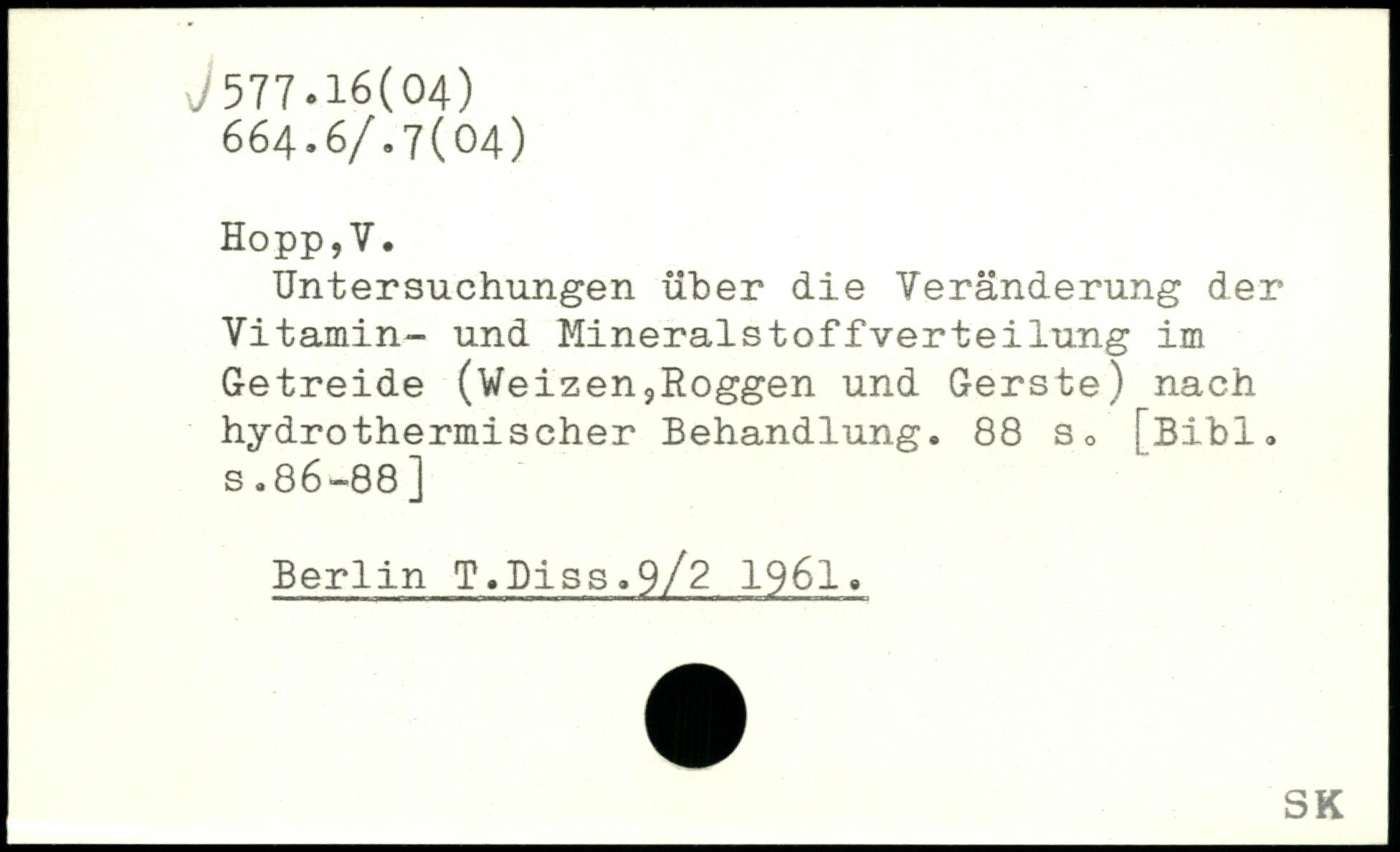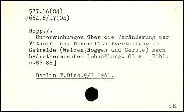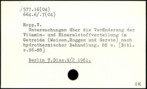 Untersuchungen über die Veränderung der Vitamin- und Mineralstoffverteilung im Getreide (Weizen,Roggen und Gerste) nach hydrothermischer Behandlung.