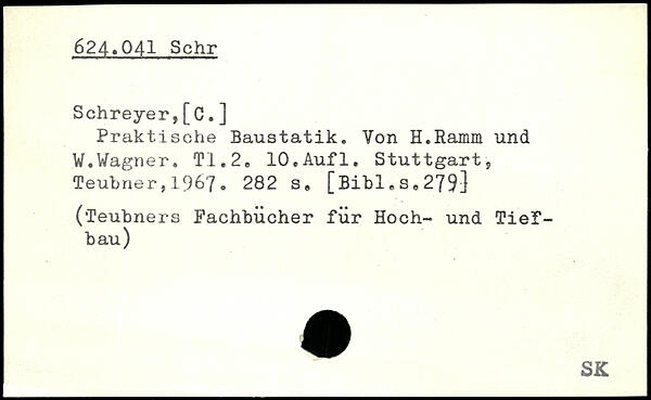 Praktische Baustatik. Von H.Ramm und W.Wagner. Ti,2. lO.Aufl. Stuttgarts Teuhner,1967.