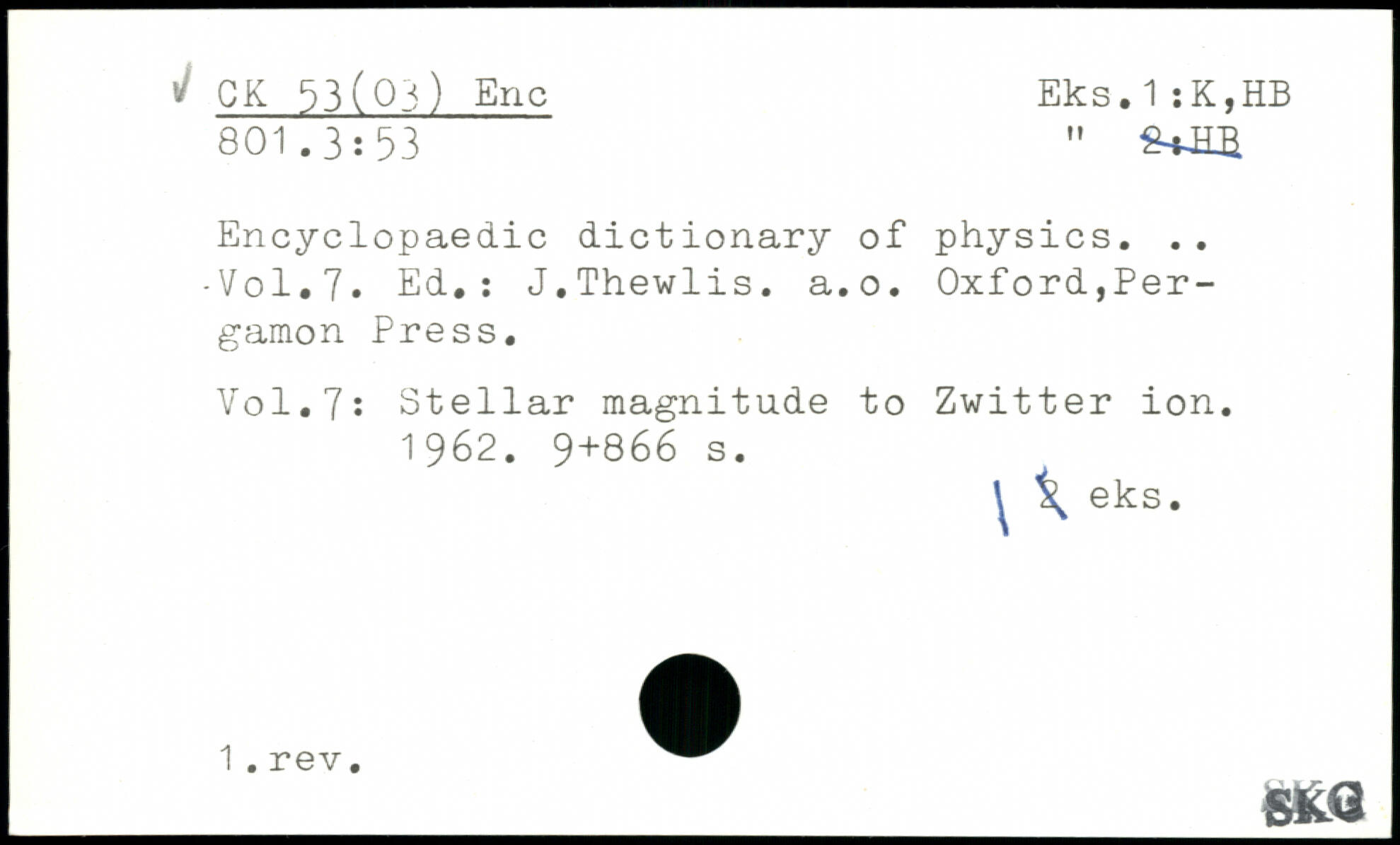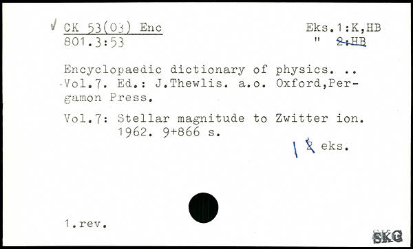 CK 53(Oj) Eric Eks. 1 :K,HB 801.3:53 " £■+££ Encyclopaedic dictionary of physics. .. -