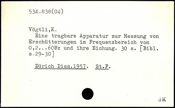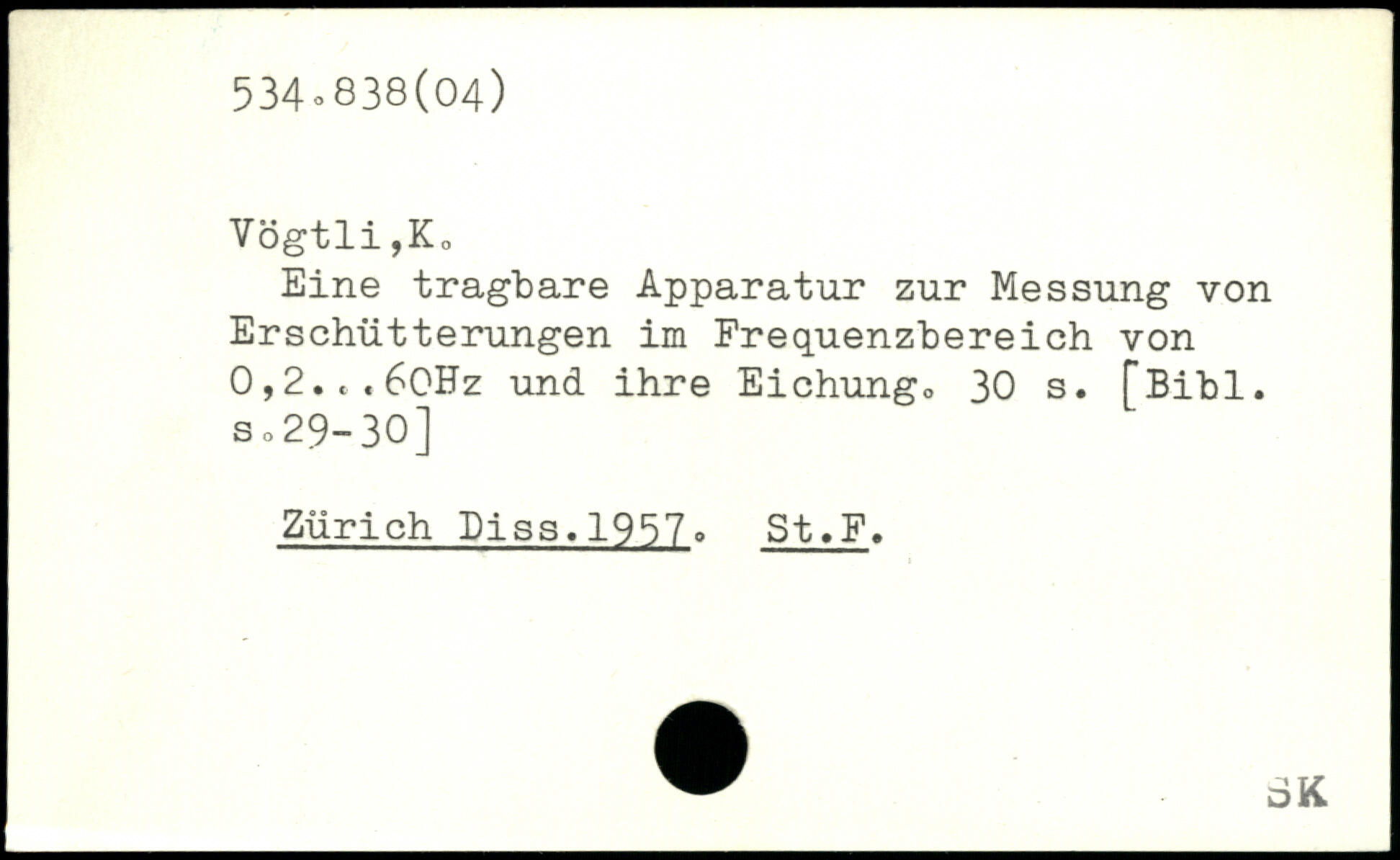 Eine tragbare Apparatur zur Messung von Erschütterungen im Frequenzbereich von 0,2. c. 60Hz und ihre Eichung,