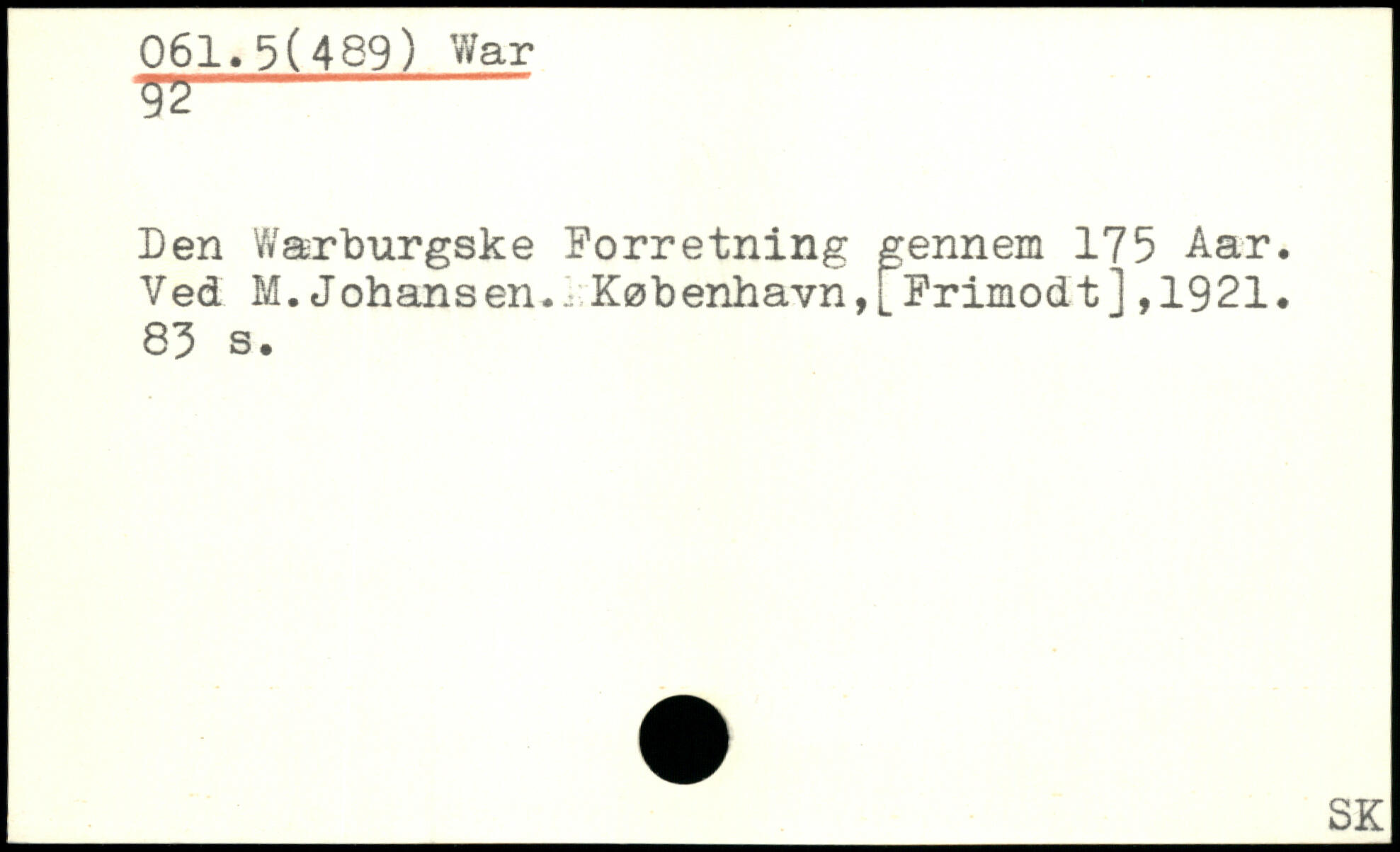 len Warburgske Forretning gennem 175 Aar. Ved M.Johansen.1København,[Frimodt],1921.