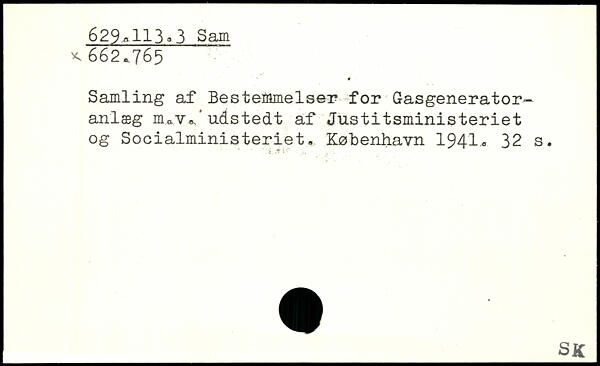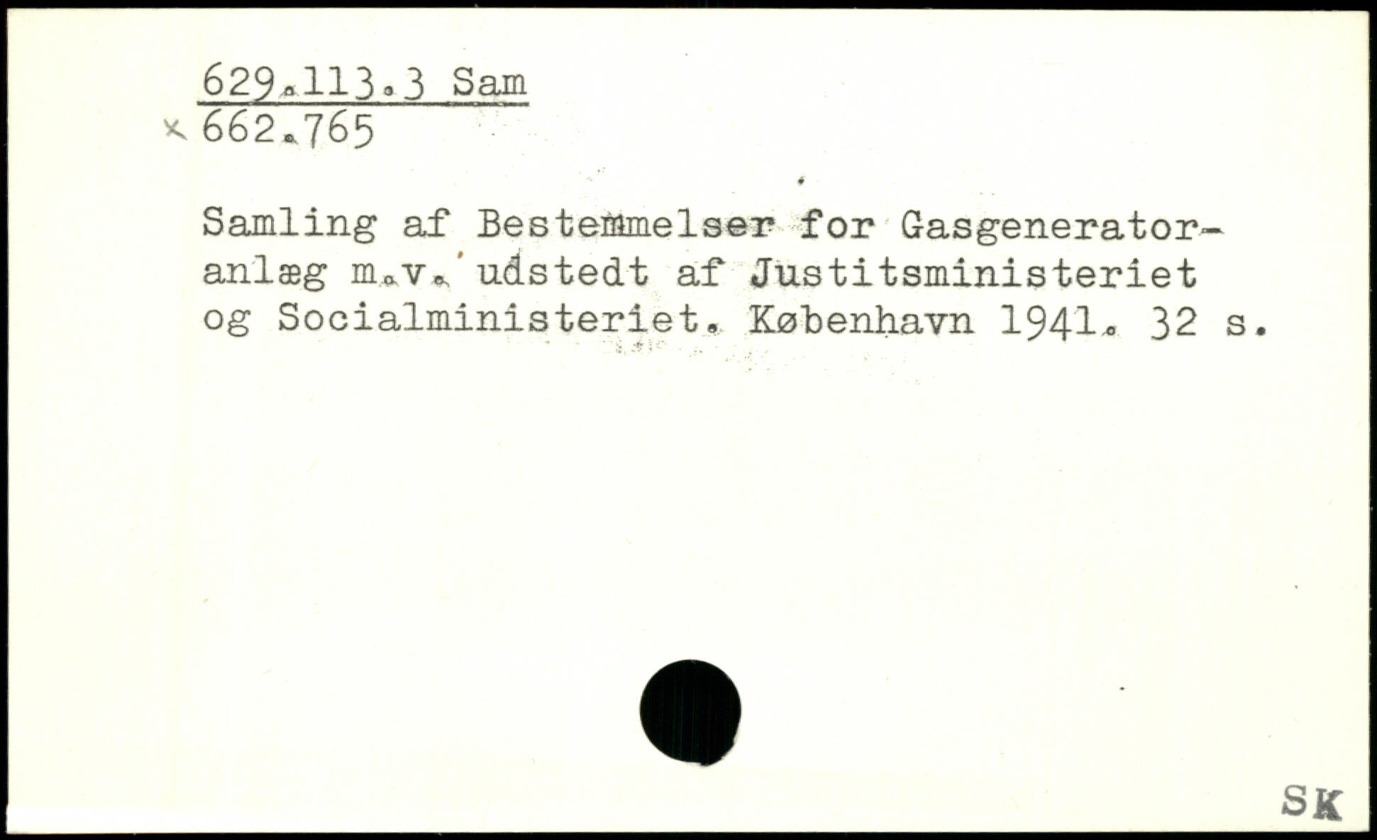 Samling af Bestemmelser for Gasgenerator-anlæg nuv,/ udstedt af Justitsministeriet og Socialministeriet