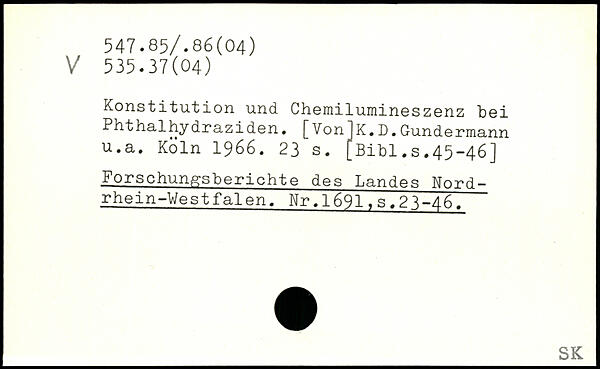 Konstitution und Chemilumineszenz bei Phthalhydraziden. [Von]K.D.Gundermann u.a.