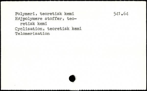 Polymeri, teoretisk kemi 541,64 H 0j polymère stoffer, teoretisk kemi Cyclisation, teoretisk kemi Télomérisation