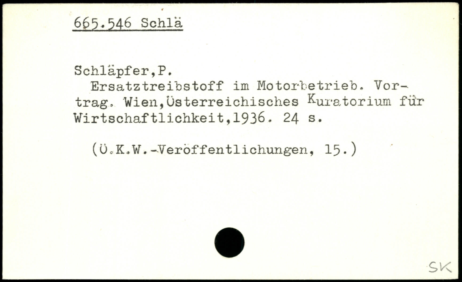Ersatztreibstoff im Motorbetrieb. Vortrag, Wien,Österreichisches Kuratorium für Wirtschaftlichkeit,1936.