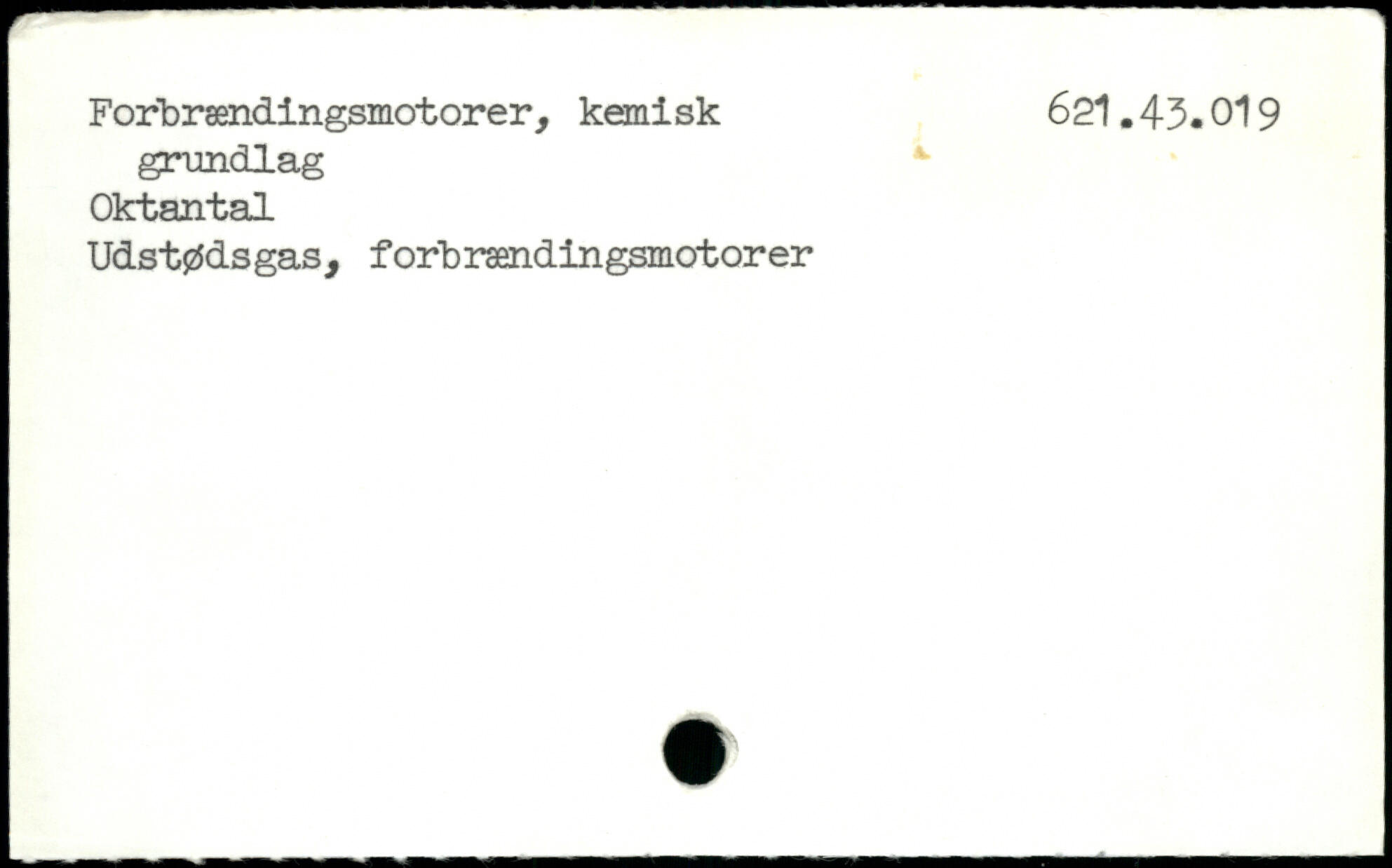 Forbrændingsmotorer, kemisk 621.43.019 grundlag Oktantal Udstødsgas, forbrændingsmotorer
