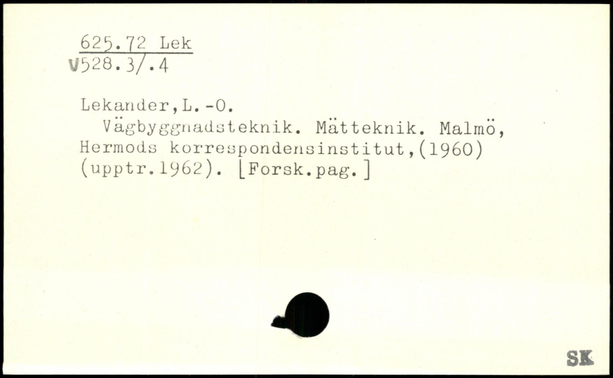 Vägbyggnadsteknik. Mätteknik. Malmö, Hermods korreapondensinstitut,(1960) (upptr.1962). [Forsk.pag.] 4