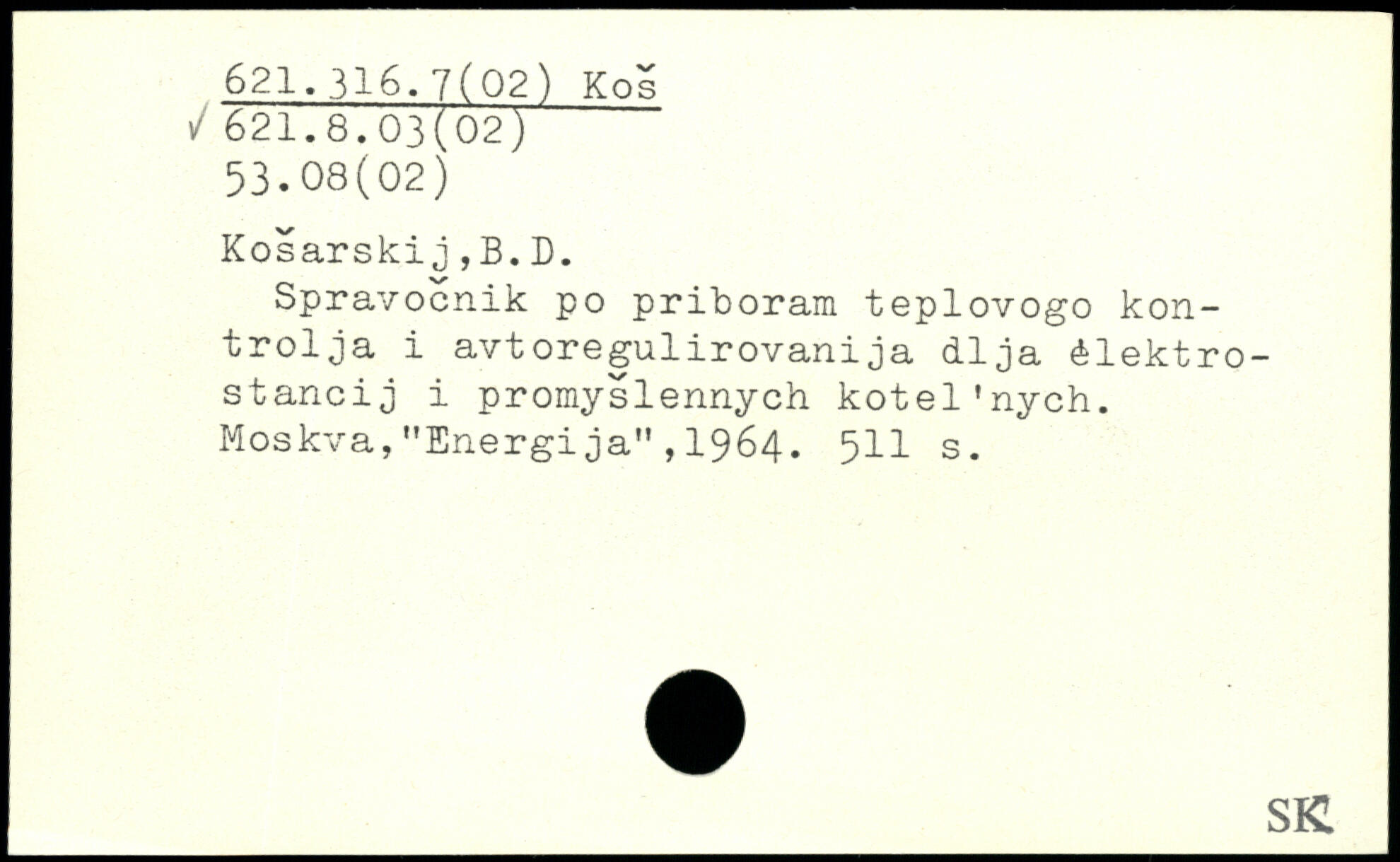 Spravocnik po priboram teplovogo kontrolja i avtoregulirovanija dija élektro-stancij i promyslennych kotel’nych. Moskva,"Energija”,1964. 5II s.