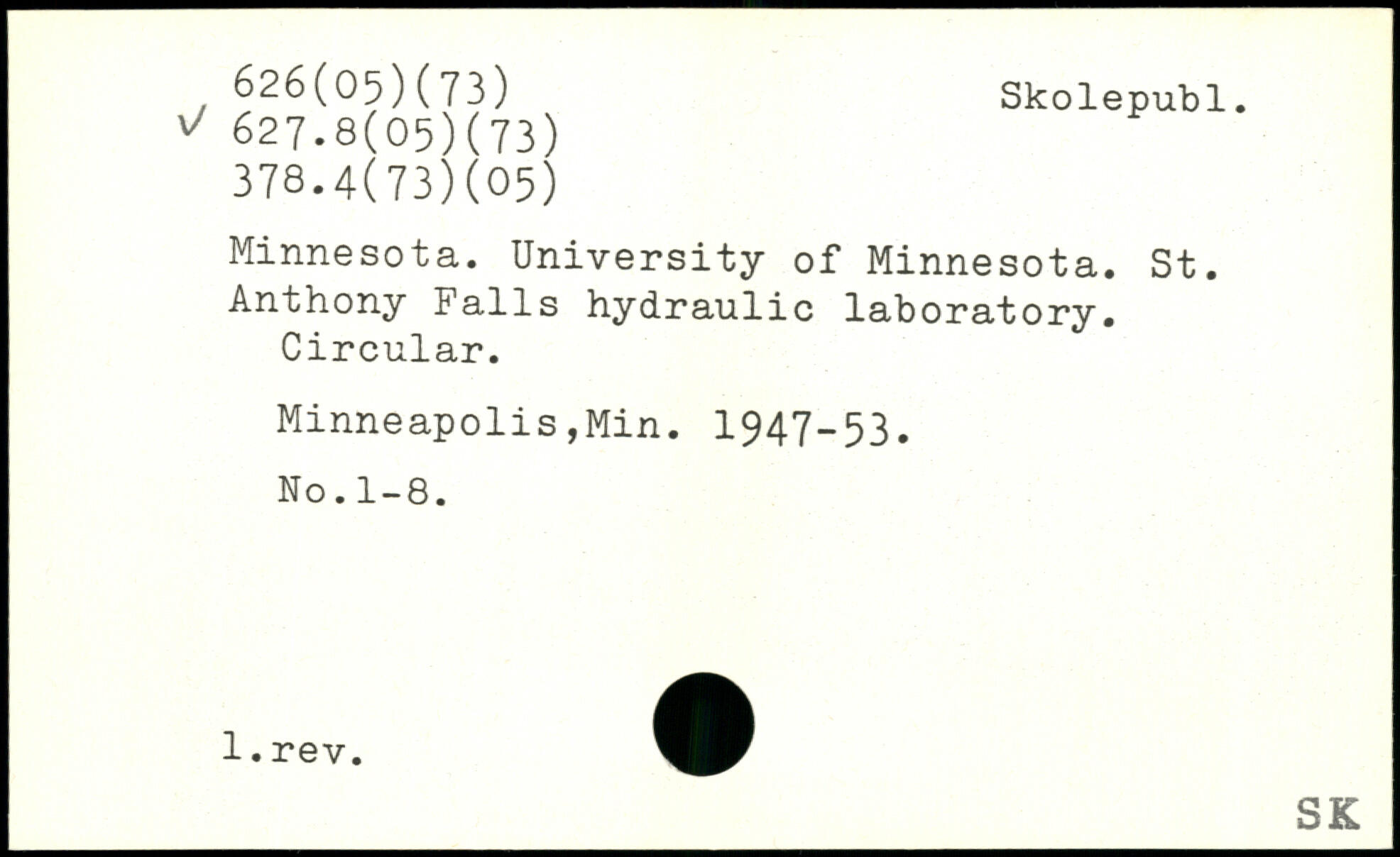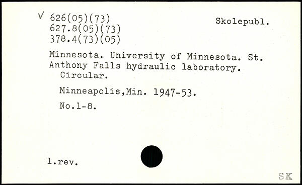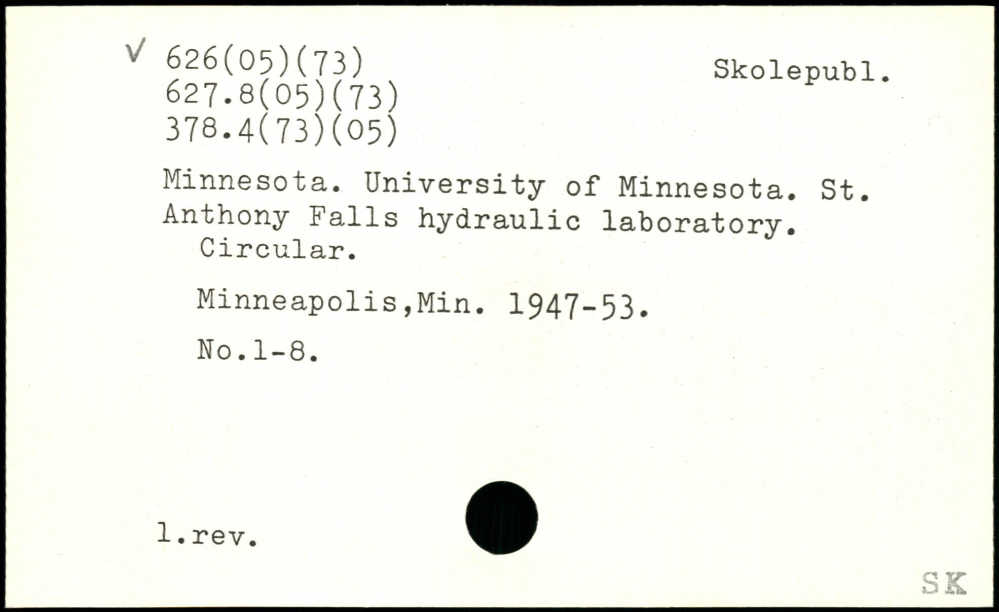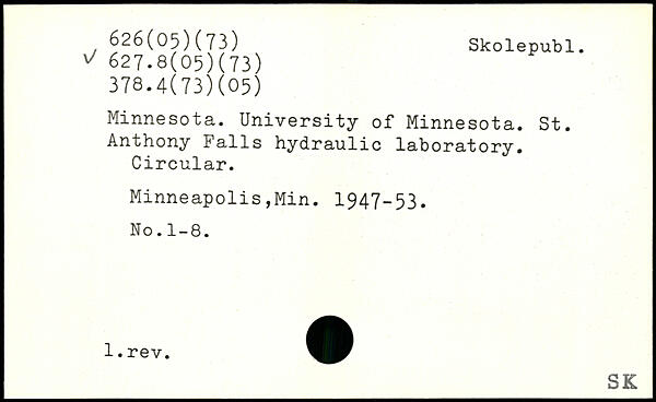 Minnesota. University of Minnesota. St. Anthony Falls hydraulic laboratory. Circular. Minneapolis,Min. 1947-53. No.1-8.