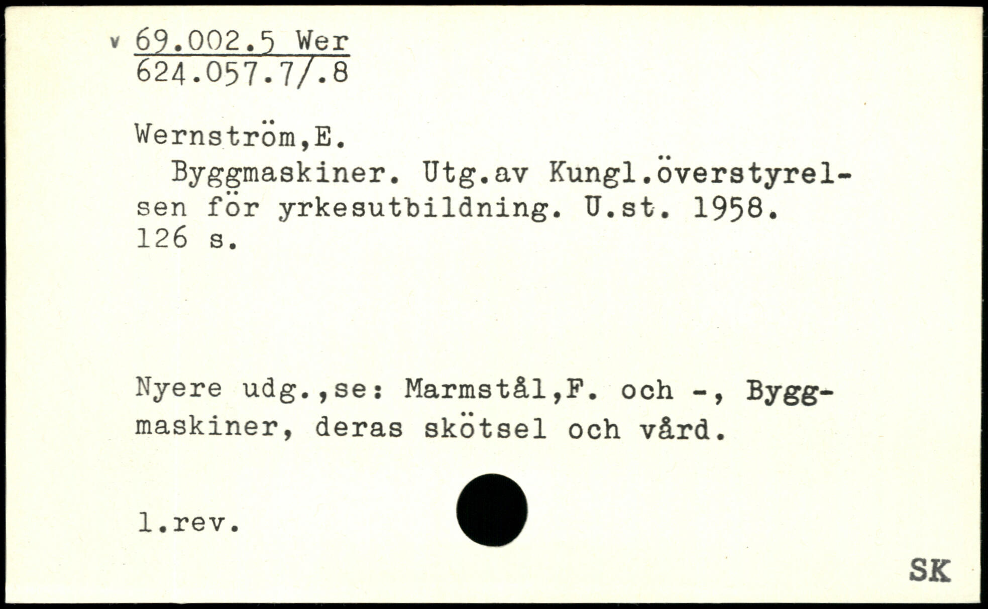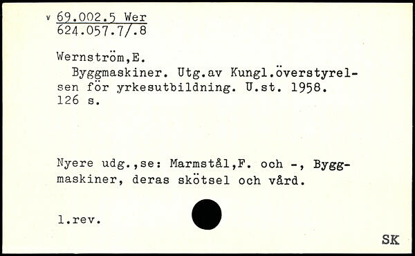 Byggmaskiner. Utg.av Kungl.överstyrelsen för yrkesutbildning. U.st. 1958.