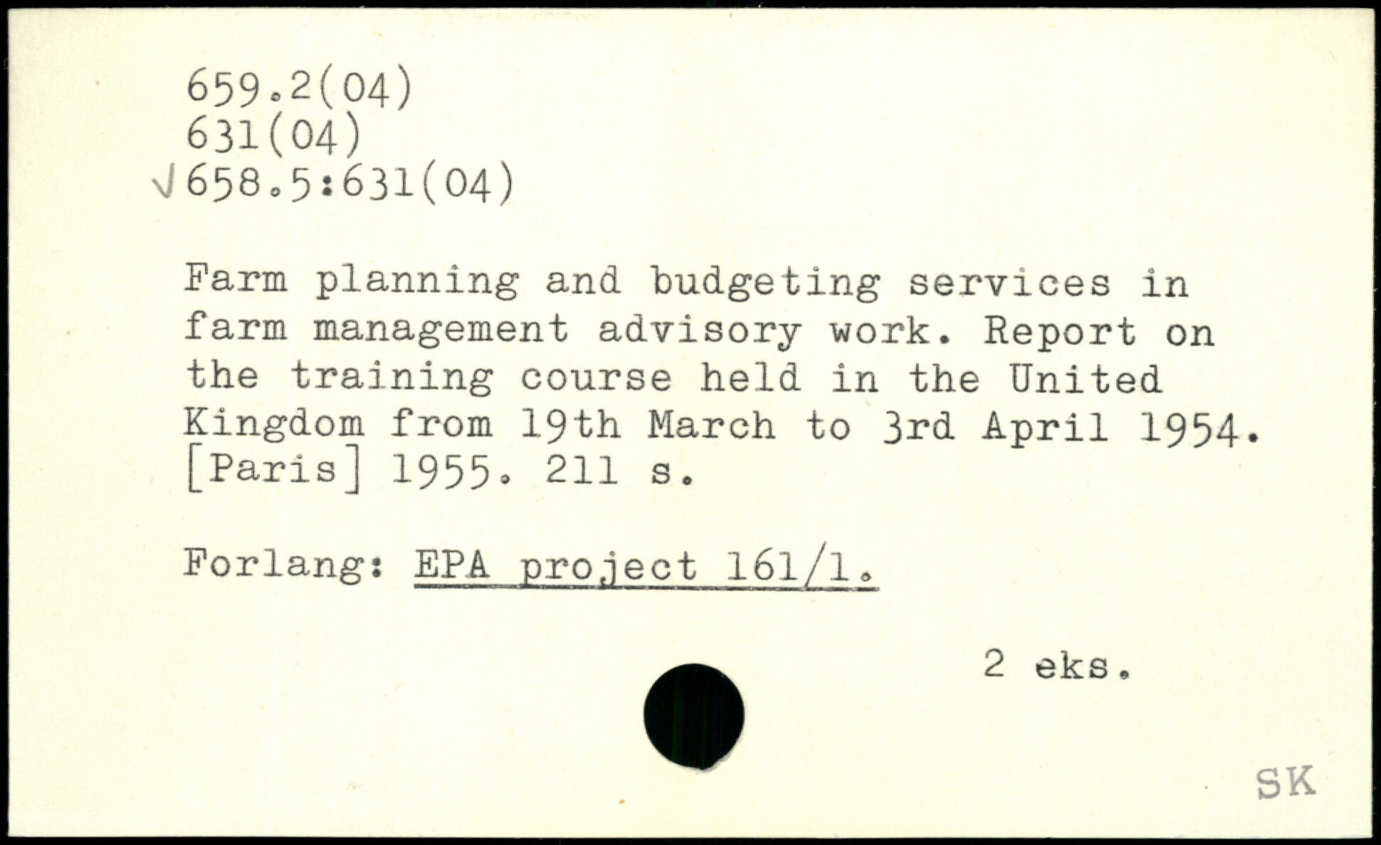 Farm planning and budgeting services in farm management advisory work. Report on the training course held in the United Kingdom from 19th March to 3rd April 1954