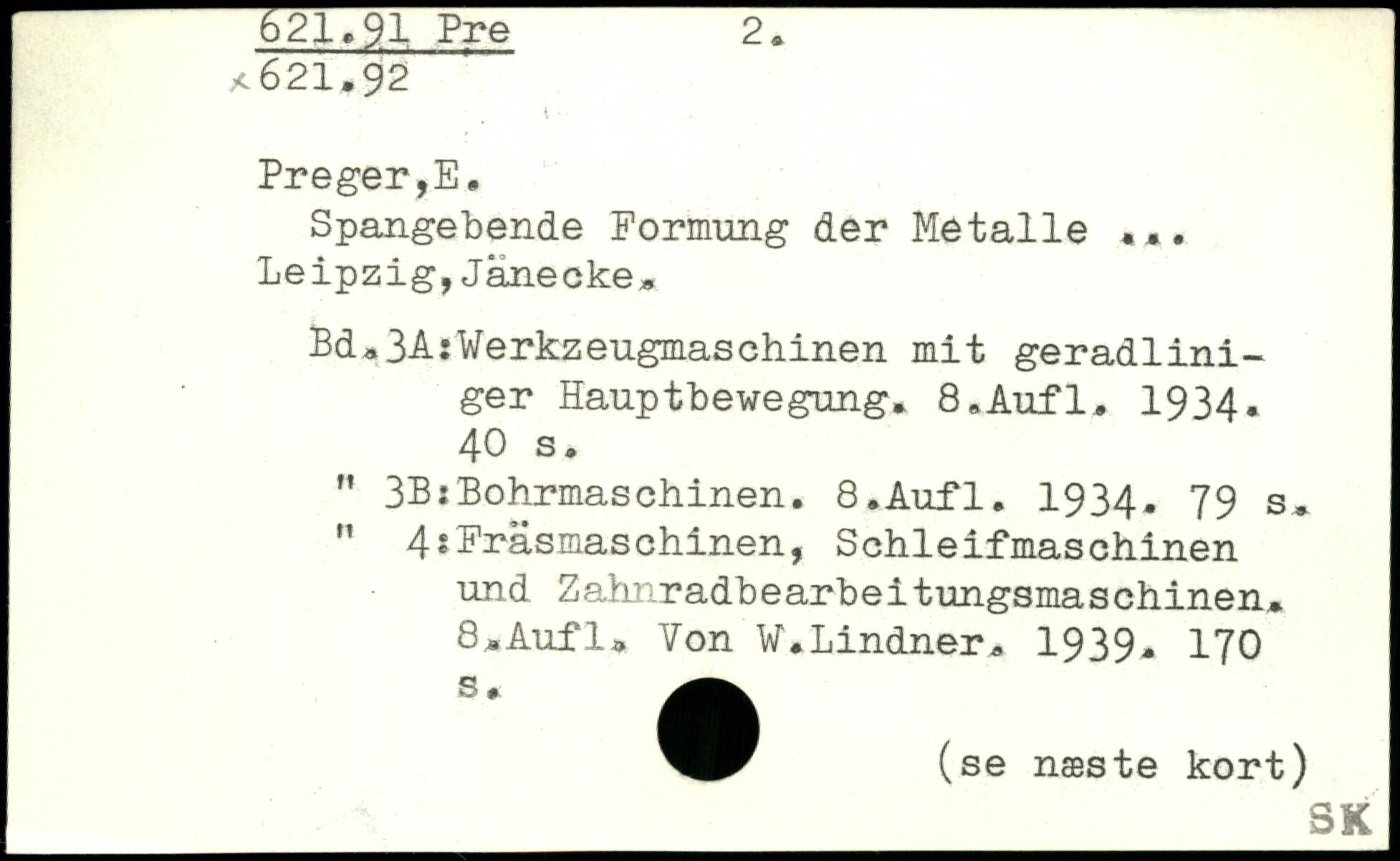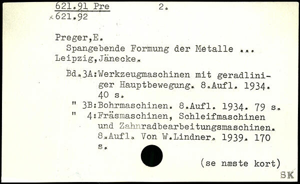 Spangebende Formung der Metalle Leipzig,Jäneoke. Bd,3A:Werkzeugmaschinen mit geradliniger Hauptbewegong, 8,Aufl, 1934.
