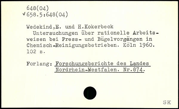 Untersuchungen über rationelle Arbeitsweisen bei Press- und Bügelvorgangen in Chemisch-Reinigungsbetrieben.