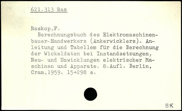 Berechnungsbuch des Elektromaschinen-bauer-Handwerkers (Ankerwicklers), Anleitung und Tabellem für die Berechnung der Wickeldaten bei Instandsetzungen, Neu- und Umwicklungen elektrischer Maschinen und Apparate,