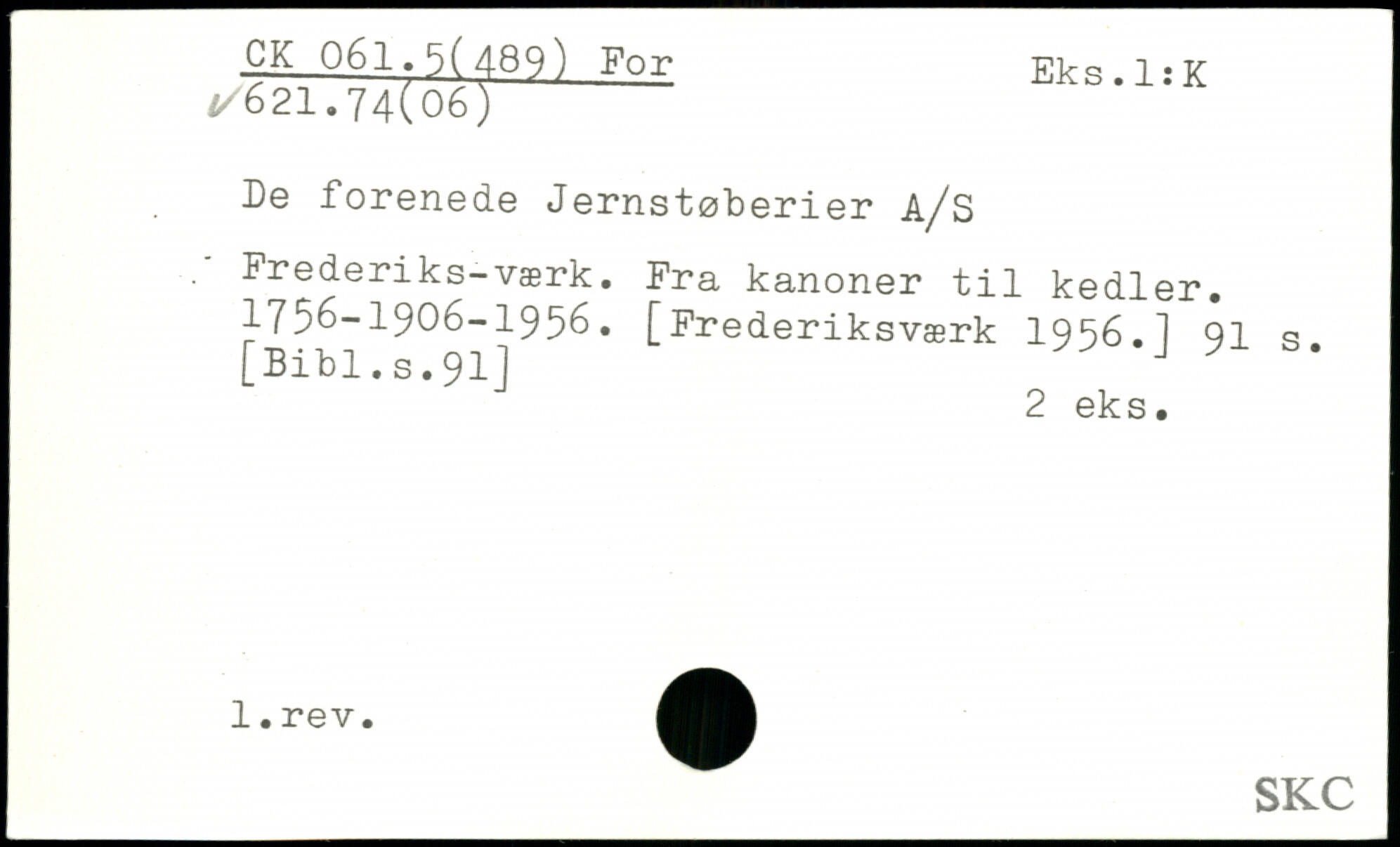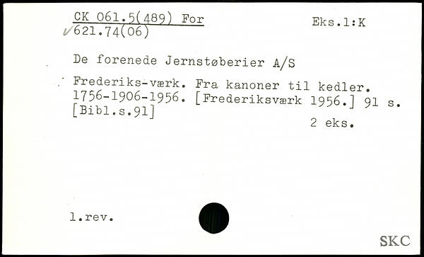De forenede Jernstøberier A/S Frederiks-værk. Fra kanoner til kedler. 1756-1906-1956. [Frederiksværk 1956.1 91 q