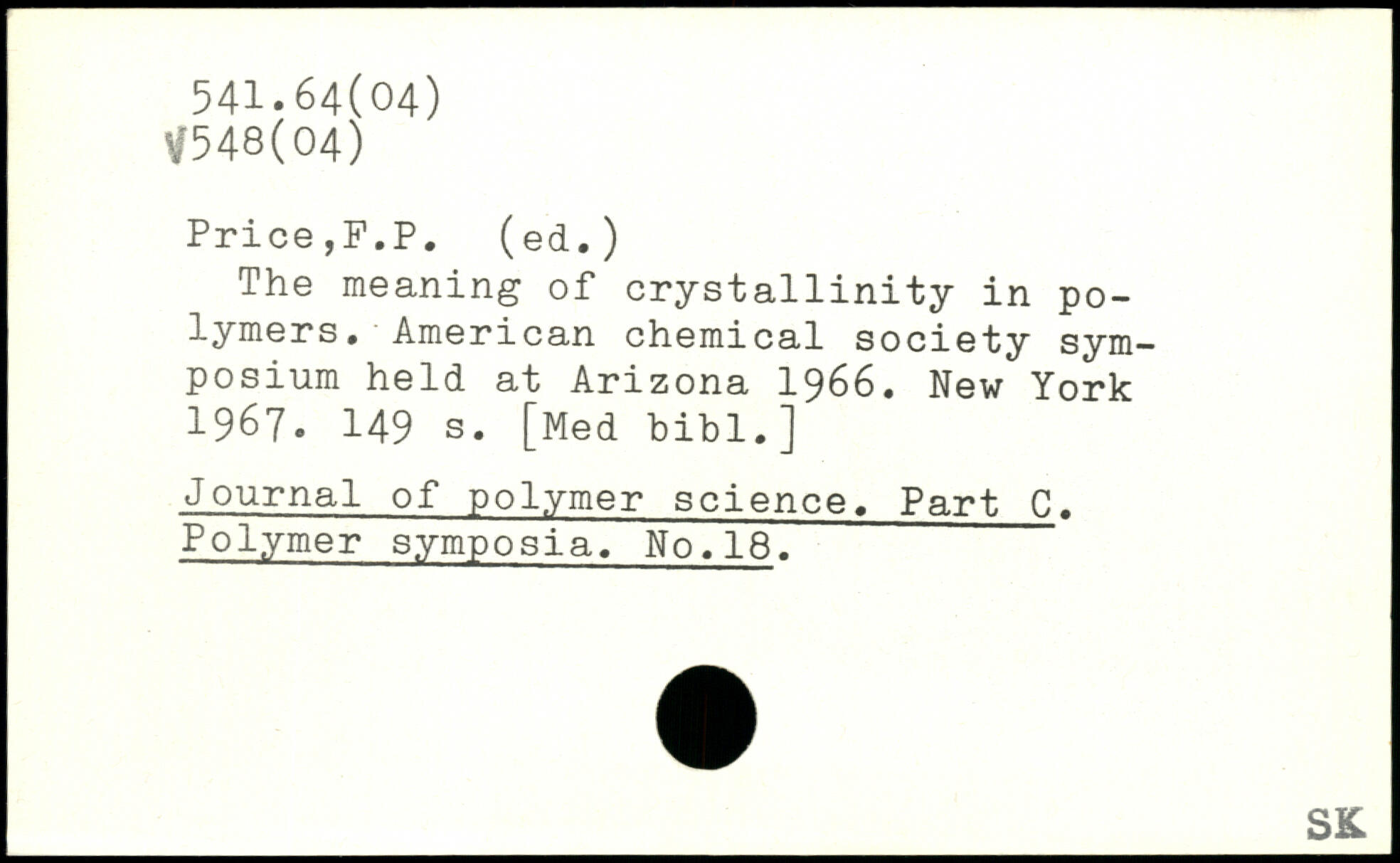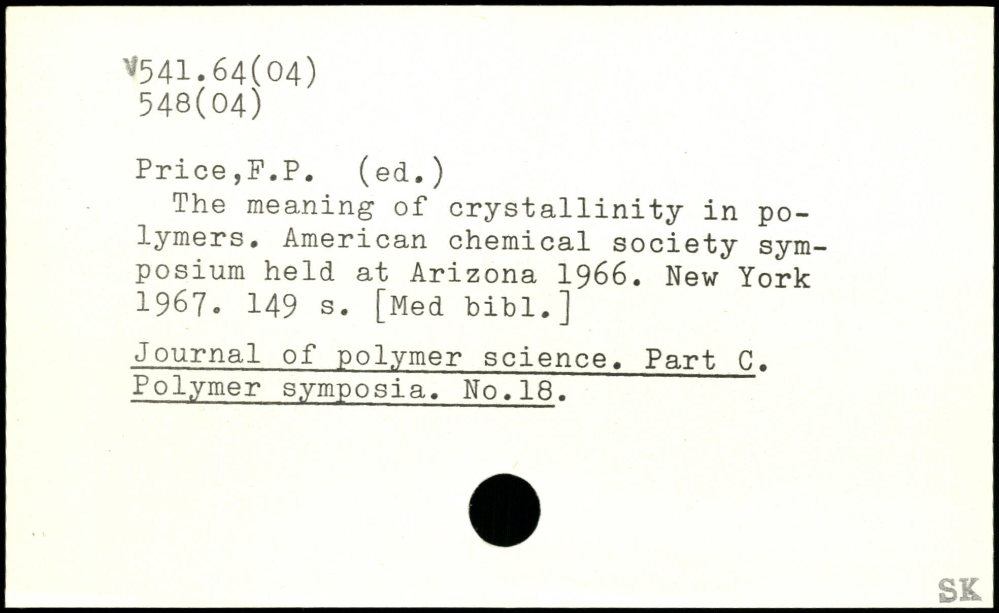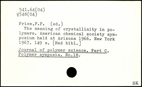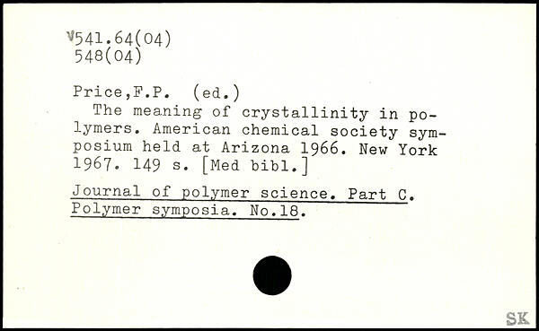 The meaning of crystallinity in polymers. American chemical society symposium held at Arizona 1966.