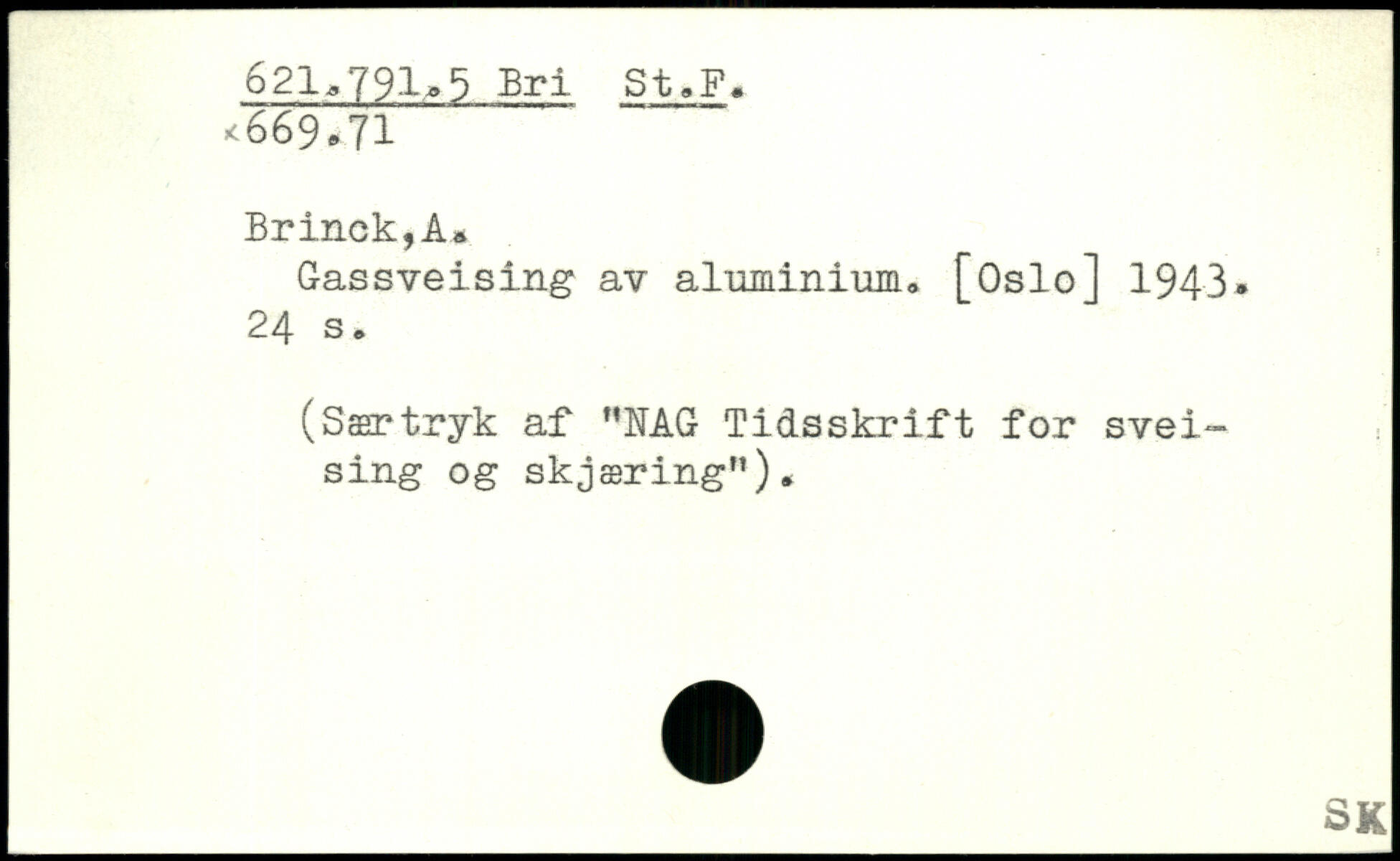 Gassveising av aluminium,, [Oslo] 1943.