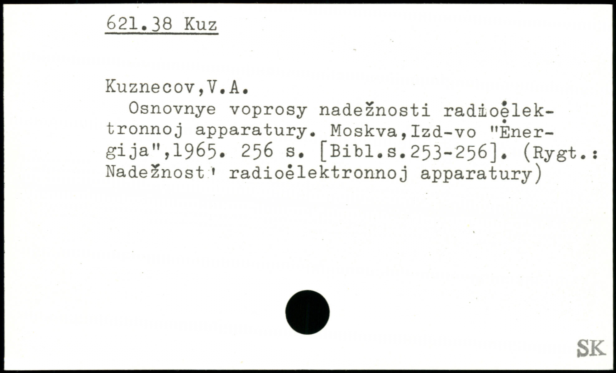 Osnovnye voprosy nadeznosti radioêlek-tronnoj apparatury. Moskva,Izd-vo "Energi ja" ,1965. 256s.