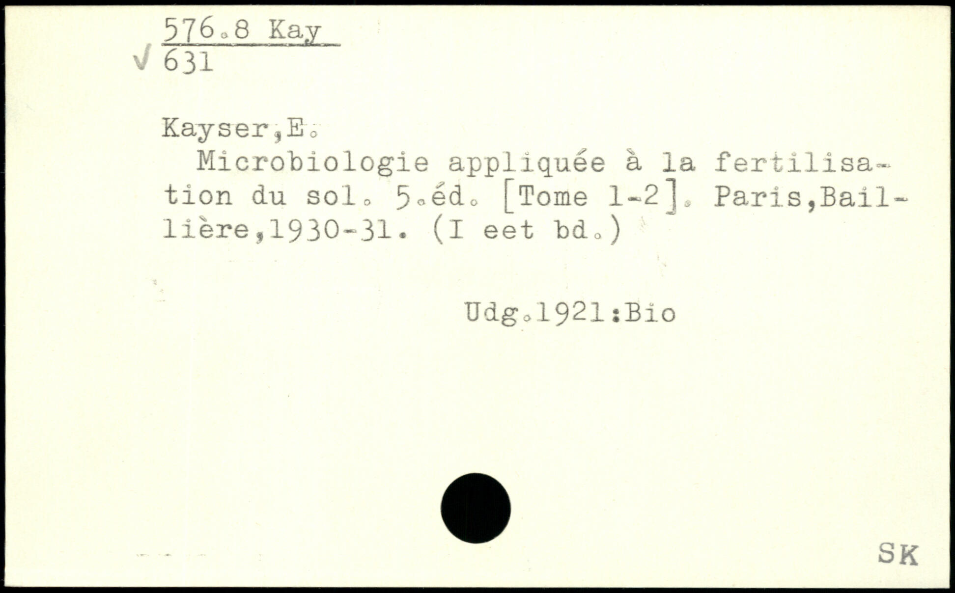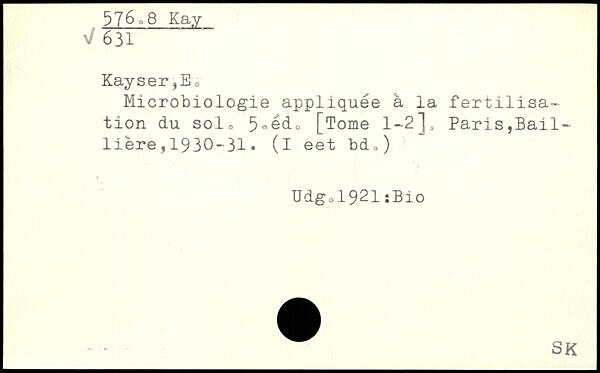 Microbiologie appliquée à la fertilisation du solo 5oédo [Tome 1—2]. Paris,Ba1111ère ,1930-31. (I eet bdo) Udgo.1921 îBio