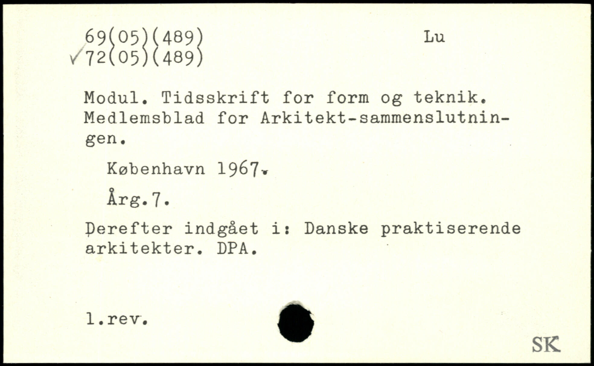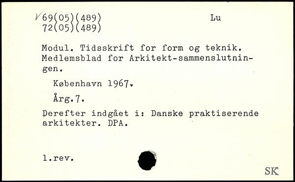 Modul. Tidsskrift for form og teknik. Medlemsblad for Arkitekt-sammenslutningen.