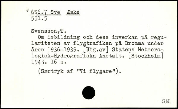 Om isbildning och dess inverkan på regulariteten av flygtrafiken på Bromma under åren 1936-1939- [TJtg.av] Statens Meteoro-logisk-Hydrografiska Anstalt.