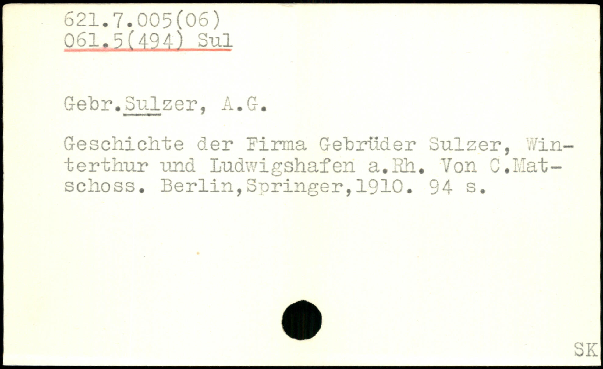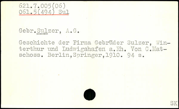 Geschichte der Pirma Gebrüder Sulzer, Winterthur und Ludwigshafen a.Eh. Yon C.Mat-schoss.