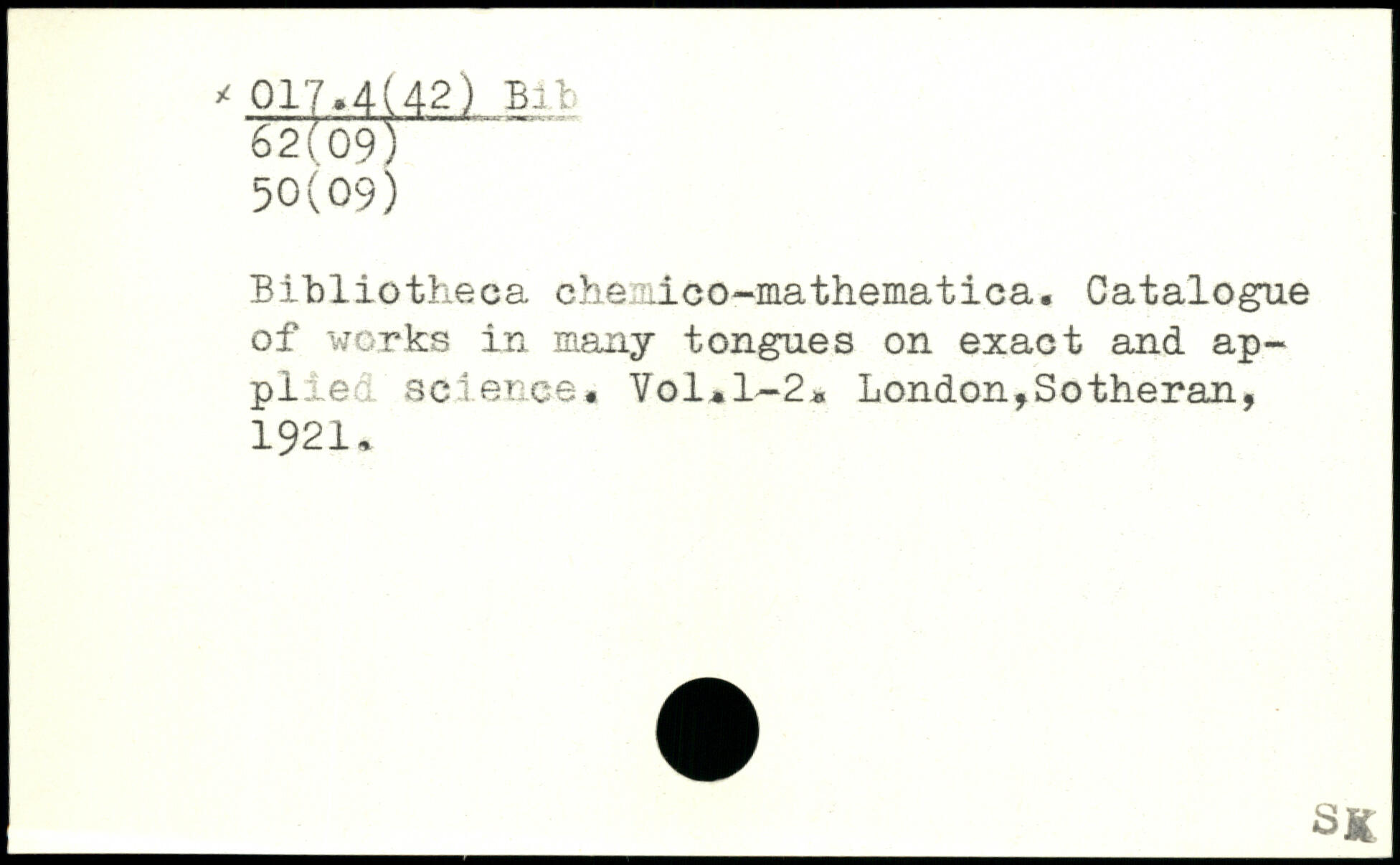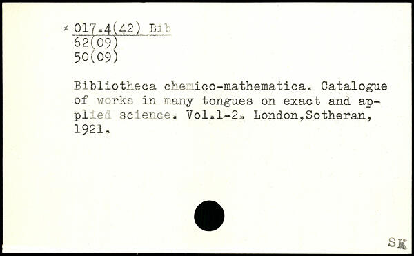 Bibliotheca chemico-mathematica. Catalogue of works in many tongues on exact and ap-pi,e. science. Vol.l-2.