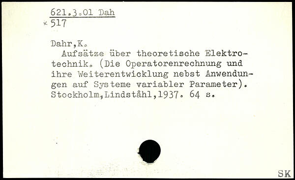 Aufsätze über theoretische Elektro- j techniko (Die Operatorenrechnung und ihre Weiterentwicklung nebst Anwendungen auf Systeme variabler Parameter).