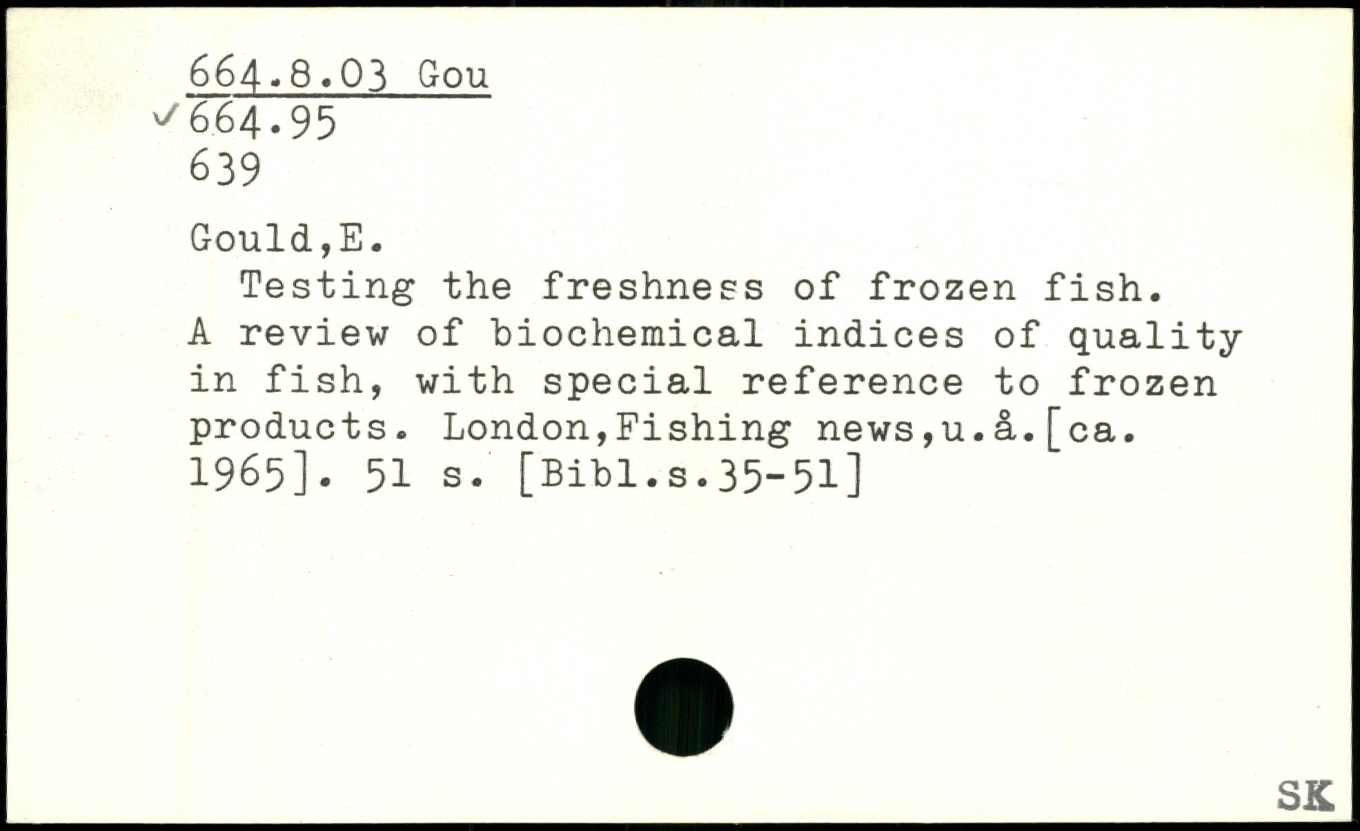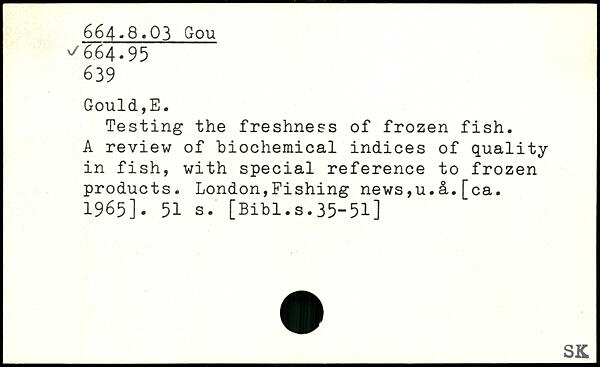 Testing the freshness of frozen fish. A review of biochemical indices of quality in fish, with special reference to frozen products. London,Fishing news,u.a.[ca. 1965].