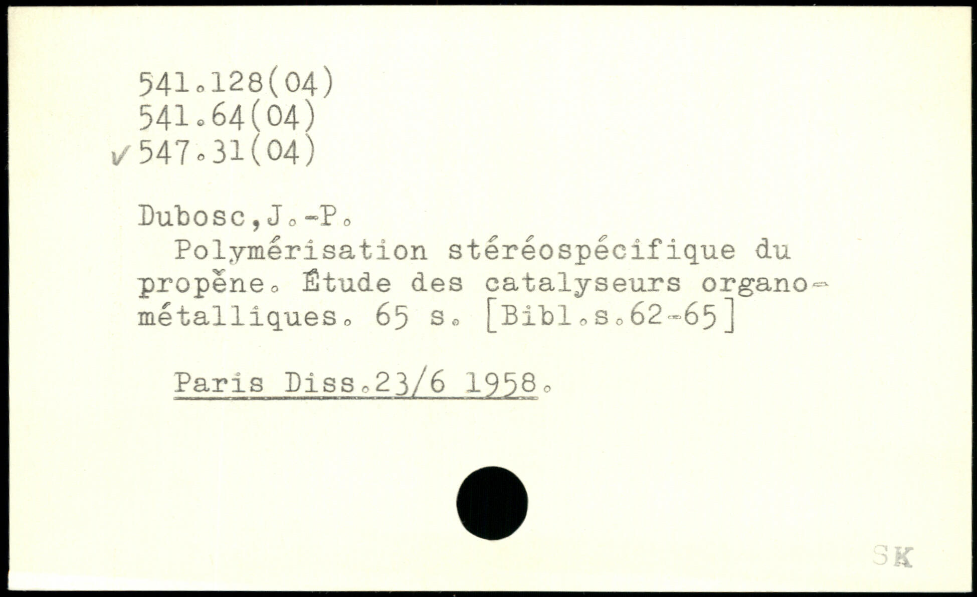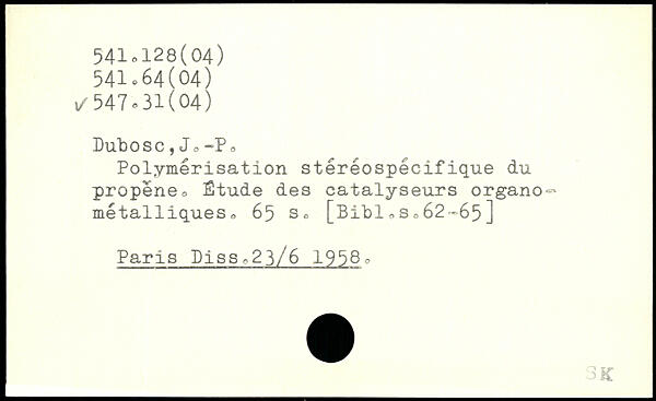 Polymérisation stéréospécifique du propëneo Étude des catalyseurs organo, métalliques,