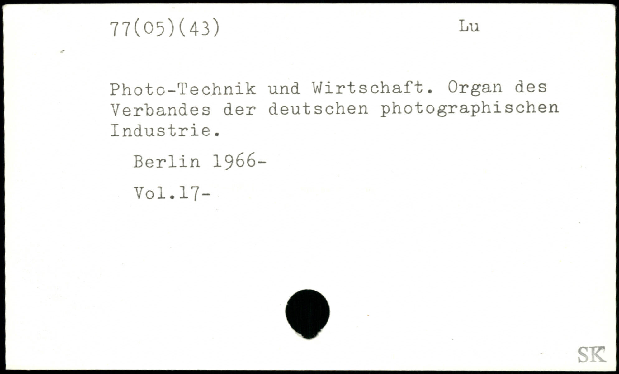 Photc-Technik und Wirtschaft. Organ des Verbandes der deutschen photographischen Industrie.