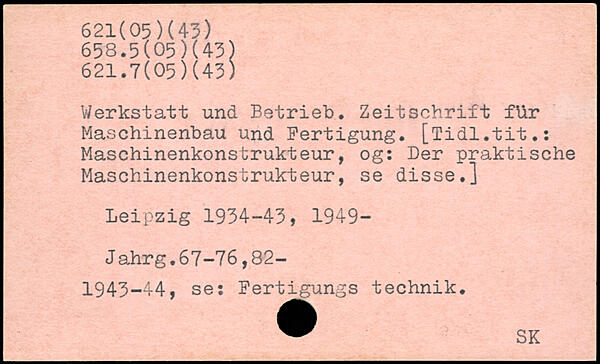Werkstatt und Betrieb. Zeitschrift für Maschinenbau und Fertigung. [Tidl.tit.: Maschinenkonstrukteur, og: Der praktische Maschinenkonstrukteur, se disse.]