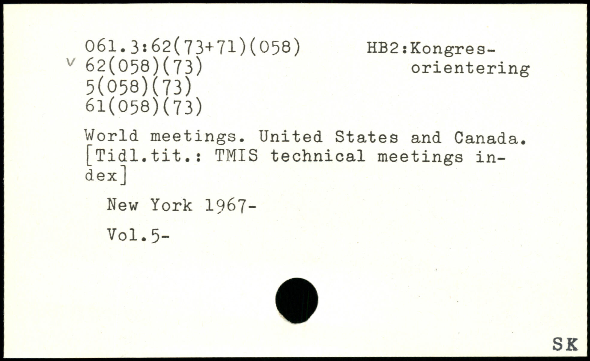 World meetings. United States and Canada. [Tidl.tit.: TMIS technical meetings index]