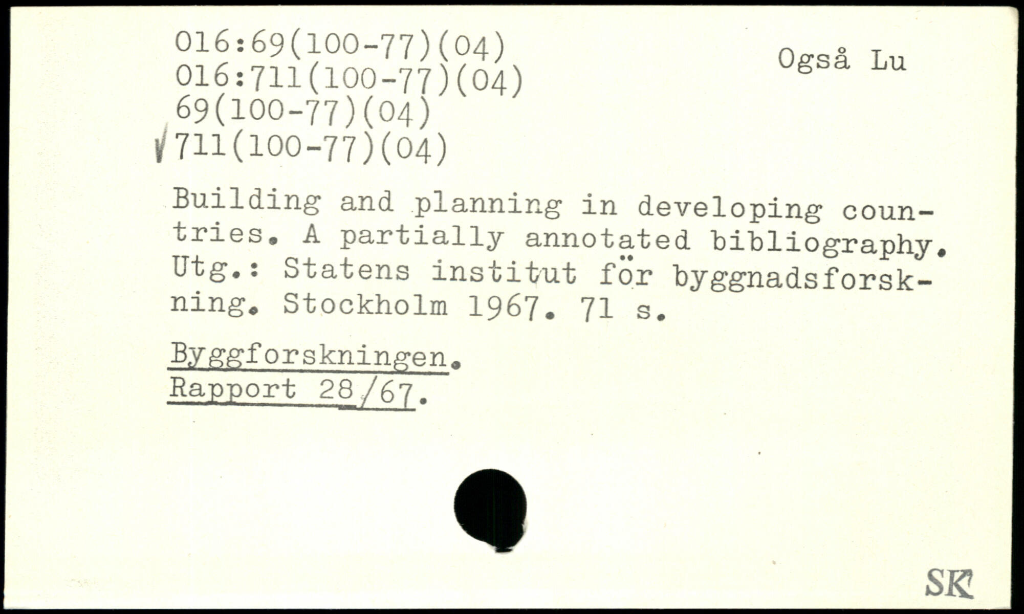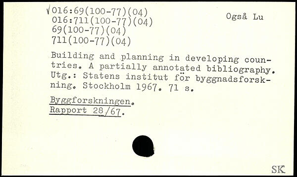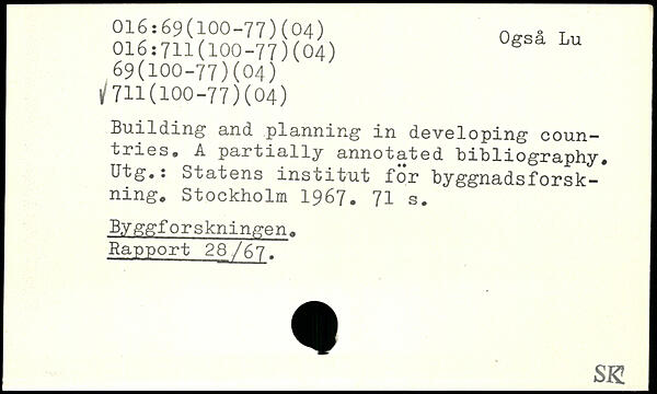Building and planning in developing countries. A partially annotated bibliography. Utg.: Statens institut för byggnadsforskning