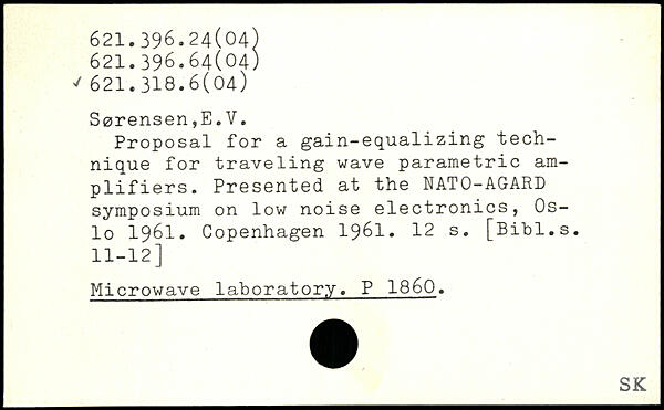 Proposal for a gain-equalizing technique for traveling wave parametric amplifiers. Presented at the NATO-AGARD symposium on low noise electronics, Oslo 1961.