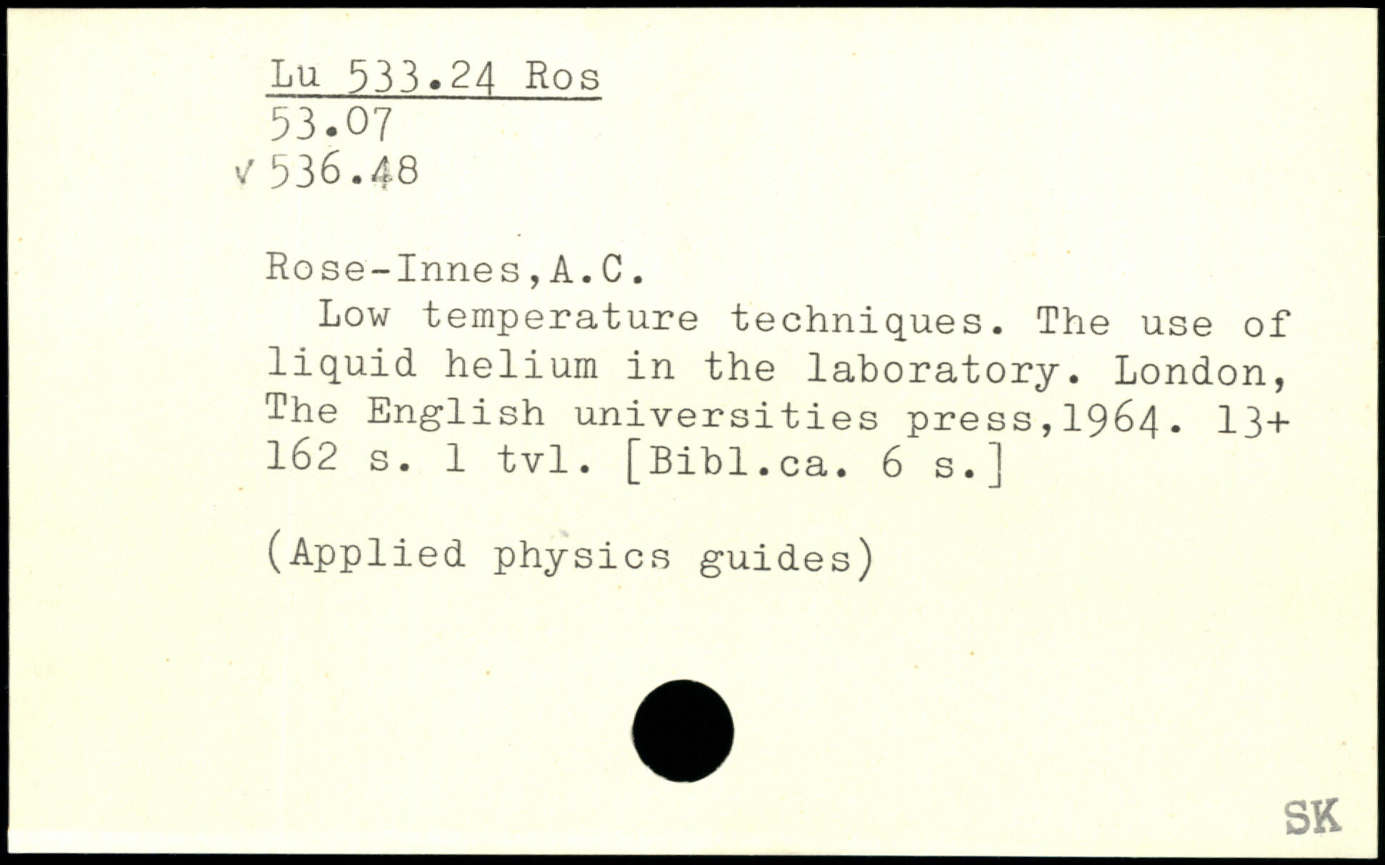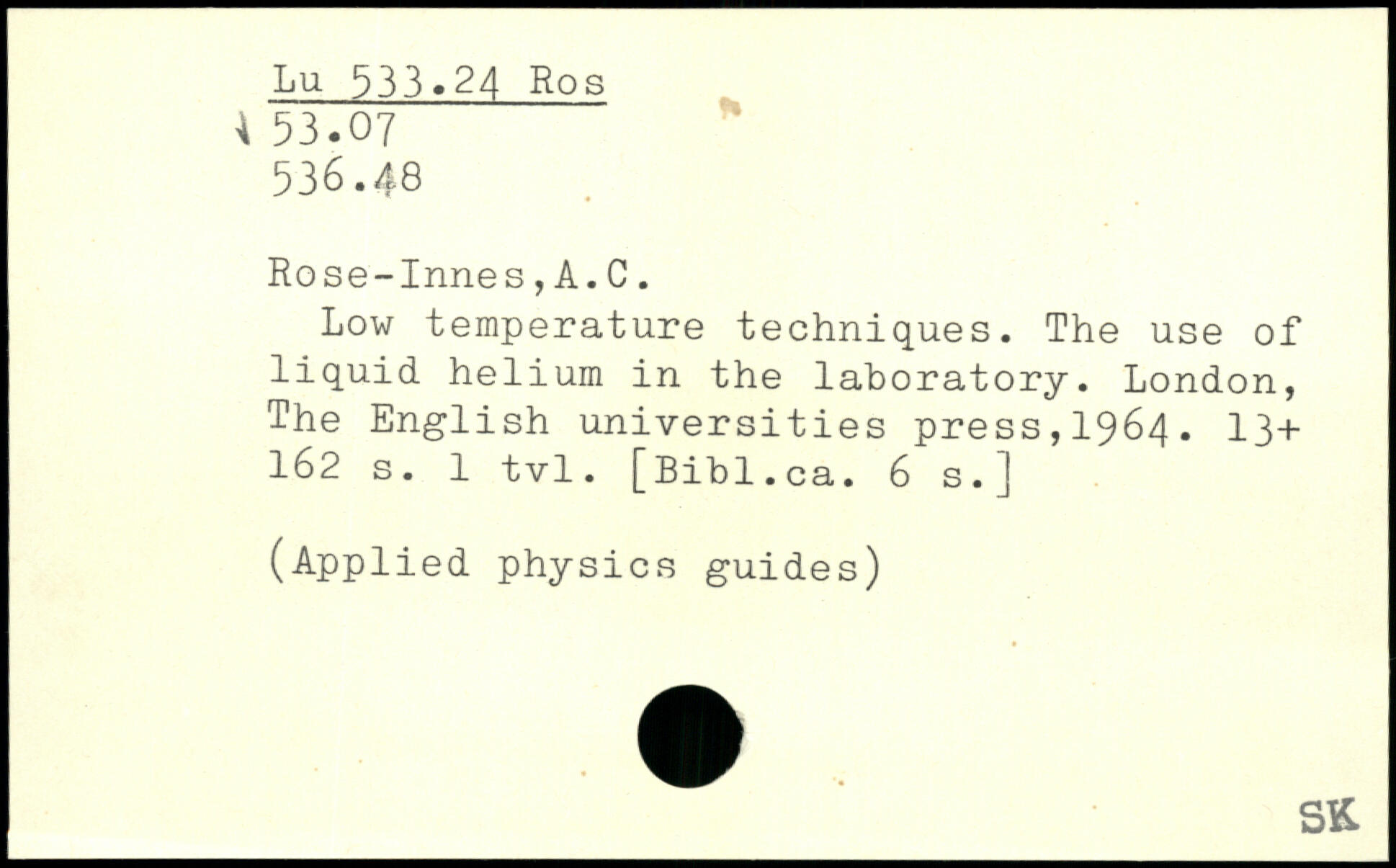 Low temperature techniques. The use of liquid helium in the laboratory.
