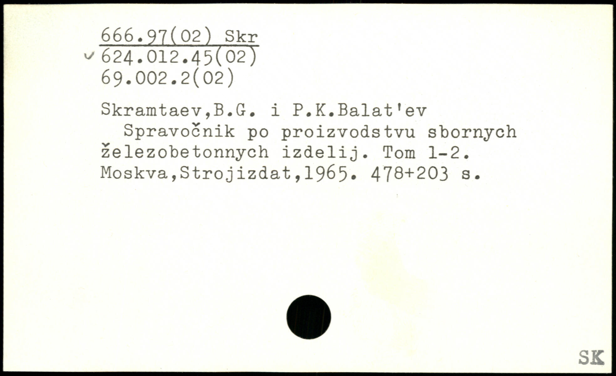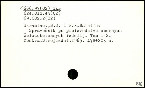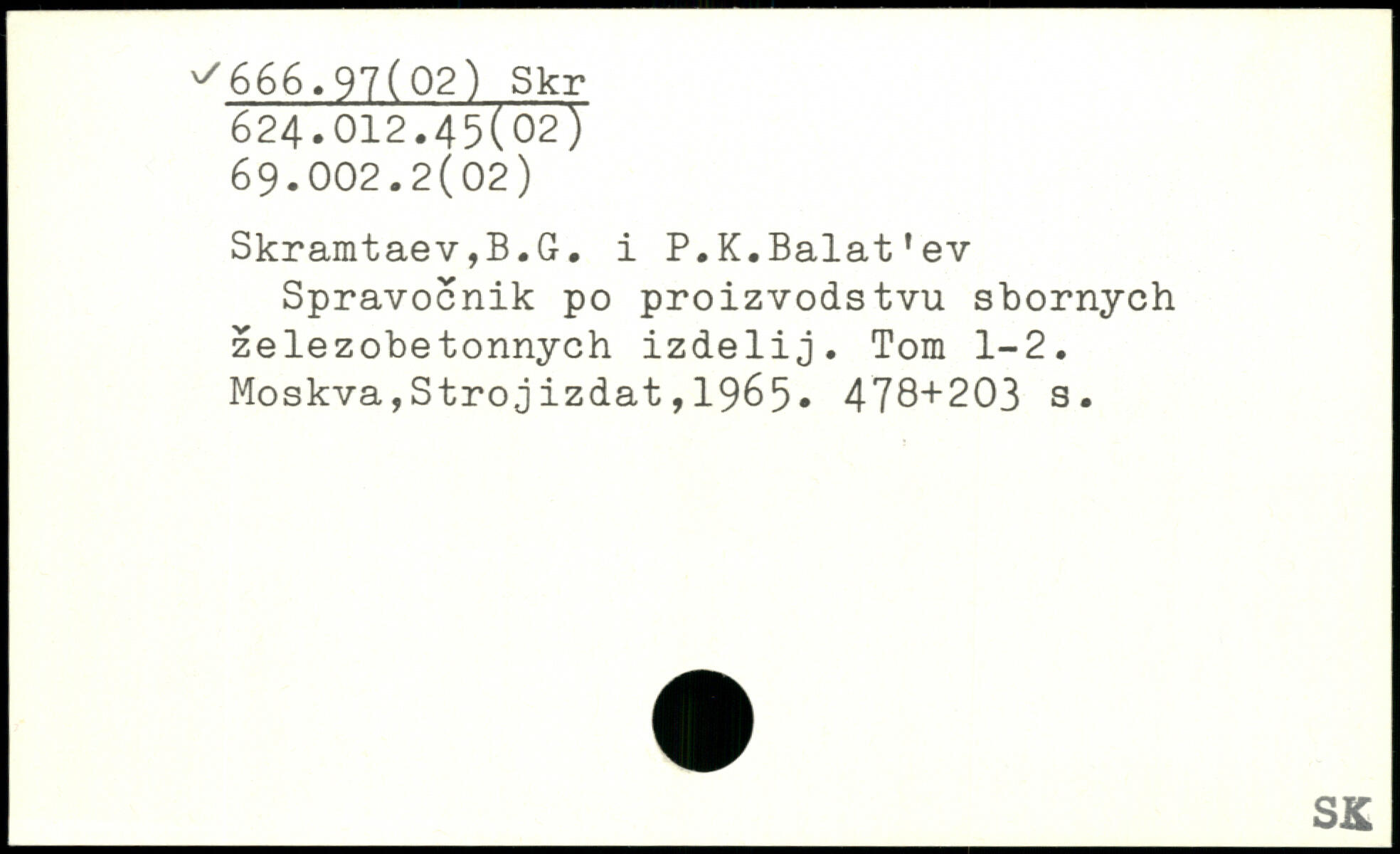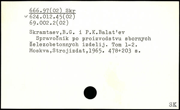 Skramtaev,B.G. i P.K.Balat’ev Spravocnik po proizvodstvu sbornych zelezobetonnych izdelij. Tom 1-2.
