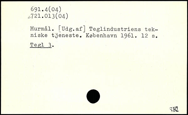 Murmål. [Udg.af] Teglindustriens tek-niske tjeneste.