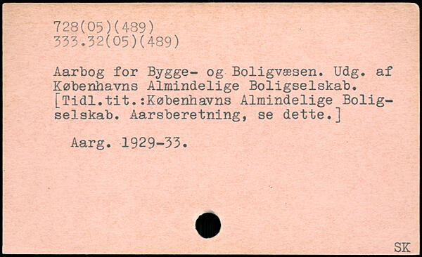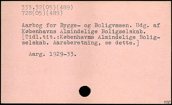 Aarbog for Bygge- og Boligvæsen. Udg. af Københavns Almindelige Boligselskab. [Tidl.tit. :Københavrrs Almindelige Boligselskab. Aarsberetning, se dette.] Aarg. 1929-53.