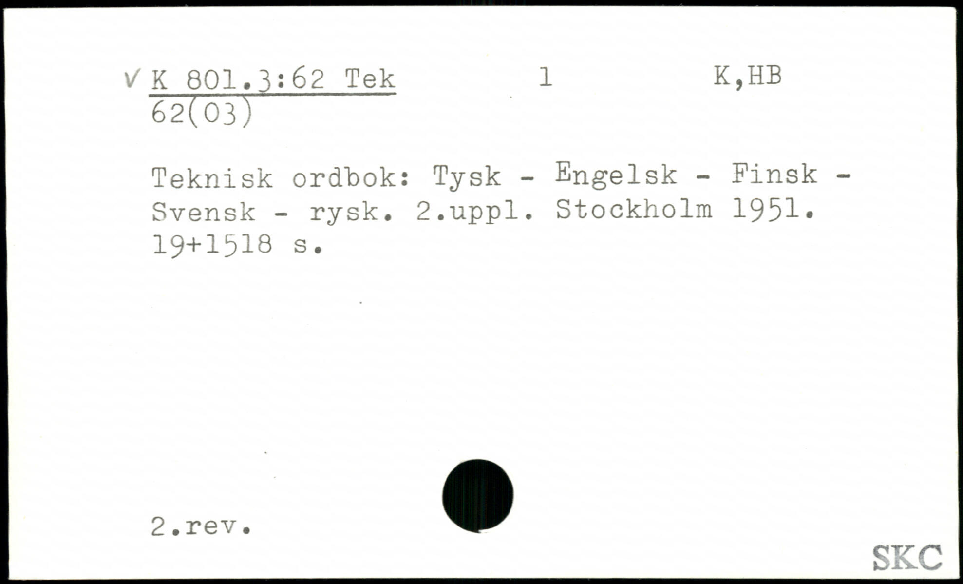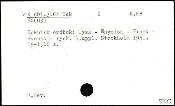 Teknisk ordhok: Tysk - Engelsk - Finsk -Svensk - rysk.