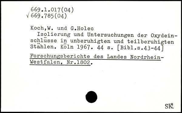 Isolierung und Untersuchungen der Oxydein-schlusse in unberuhigten und teilberuhigten Stählen.