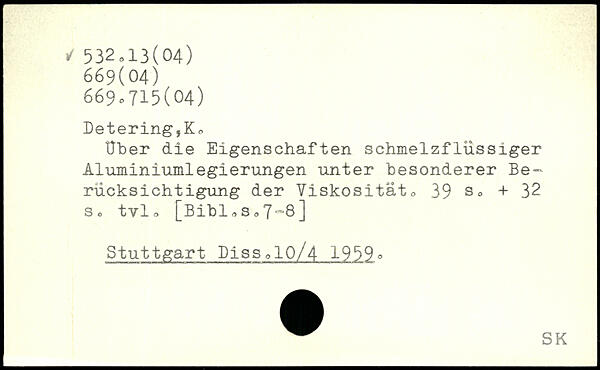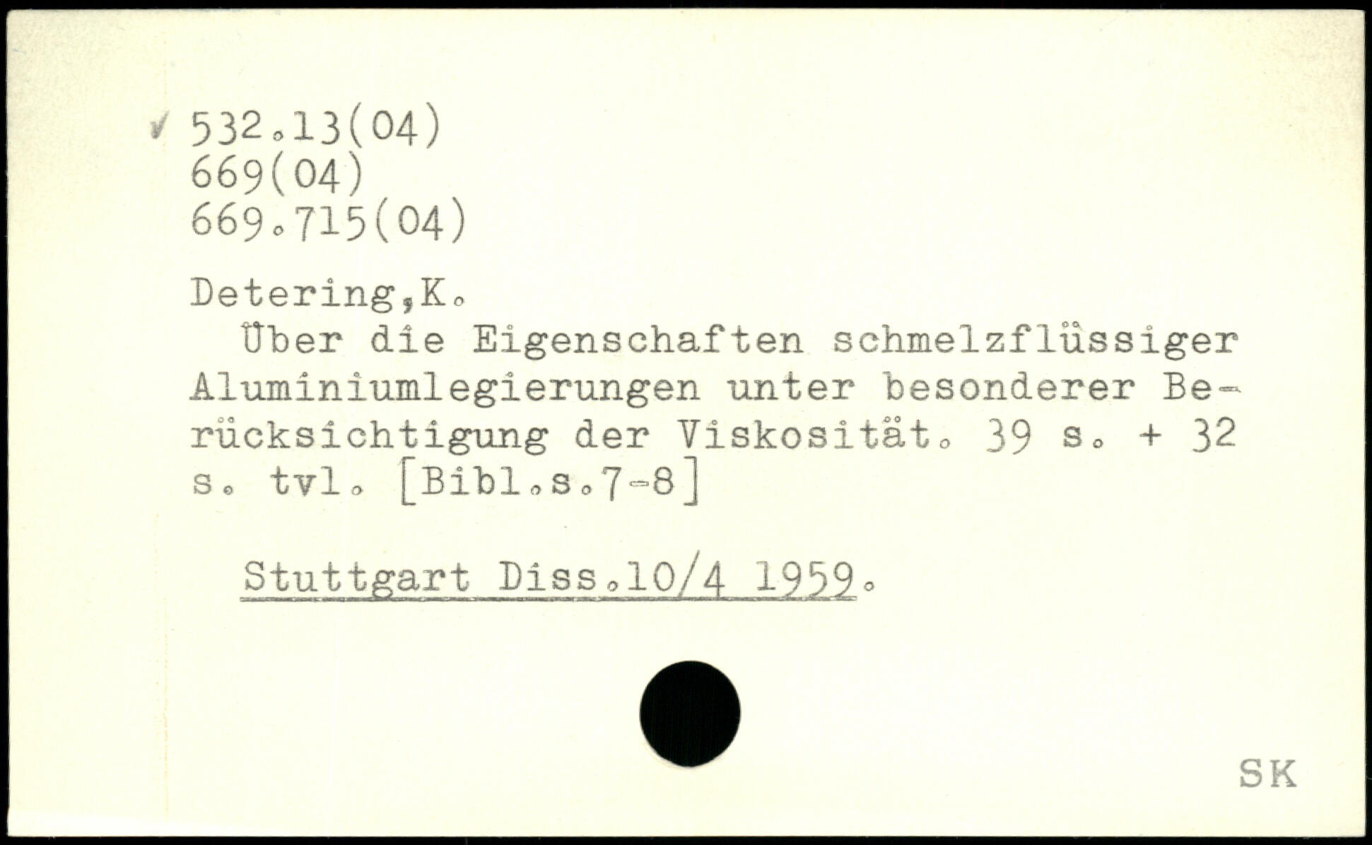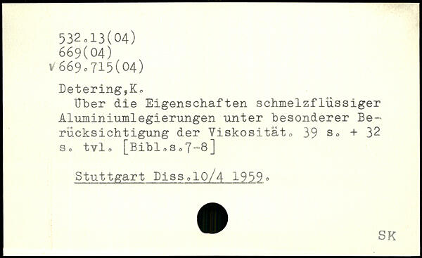 Uber die Eigenschaften schmelzflüssiger Aluminiumlegierungen unter besonderer Berücksichtigung der Viskositäto
