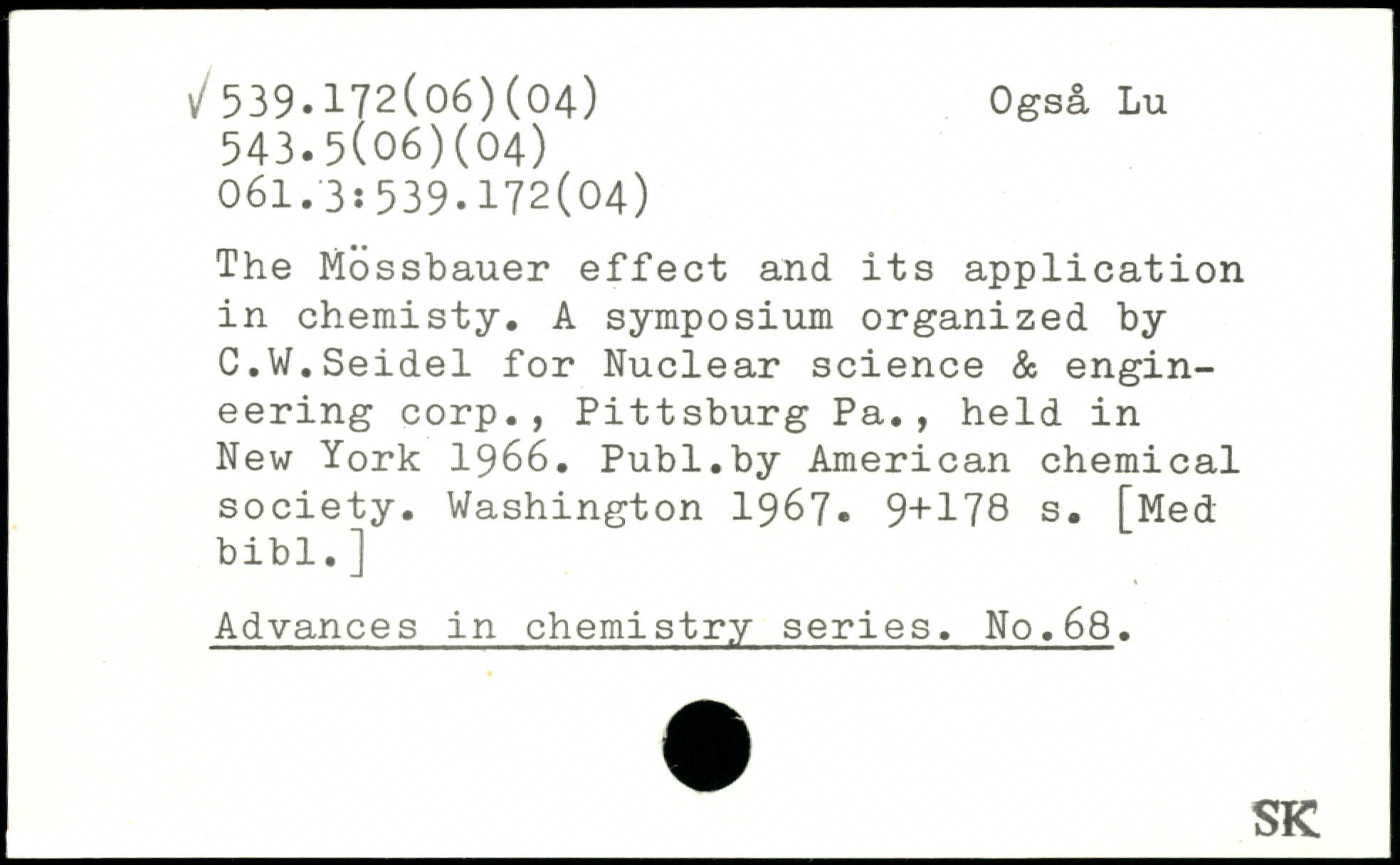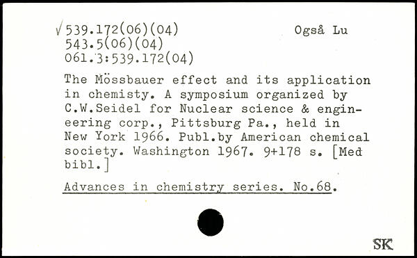 The Mossbauer effect and its application in chemisty. A symposium organized by C.W.Seidel for Nuclear science & engineering corp., Pittsburg Pa., held in