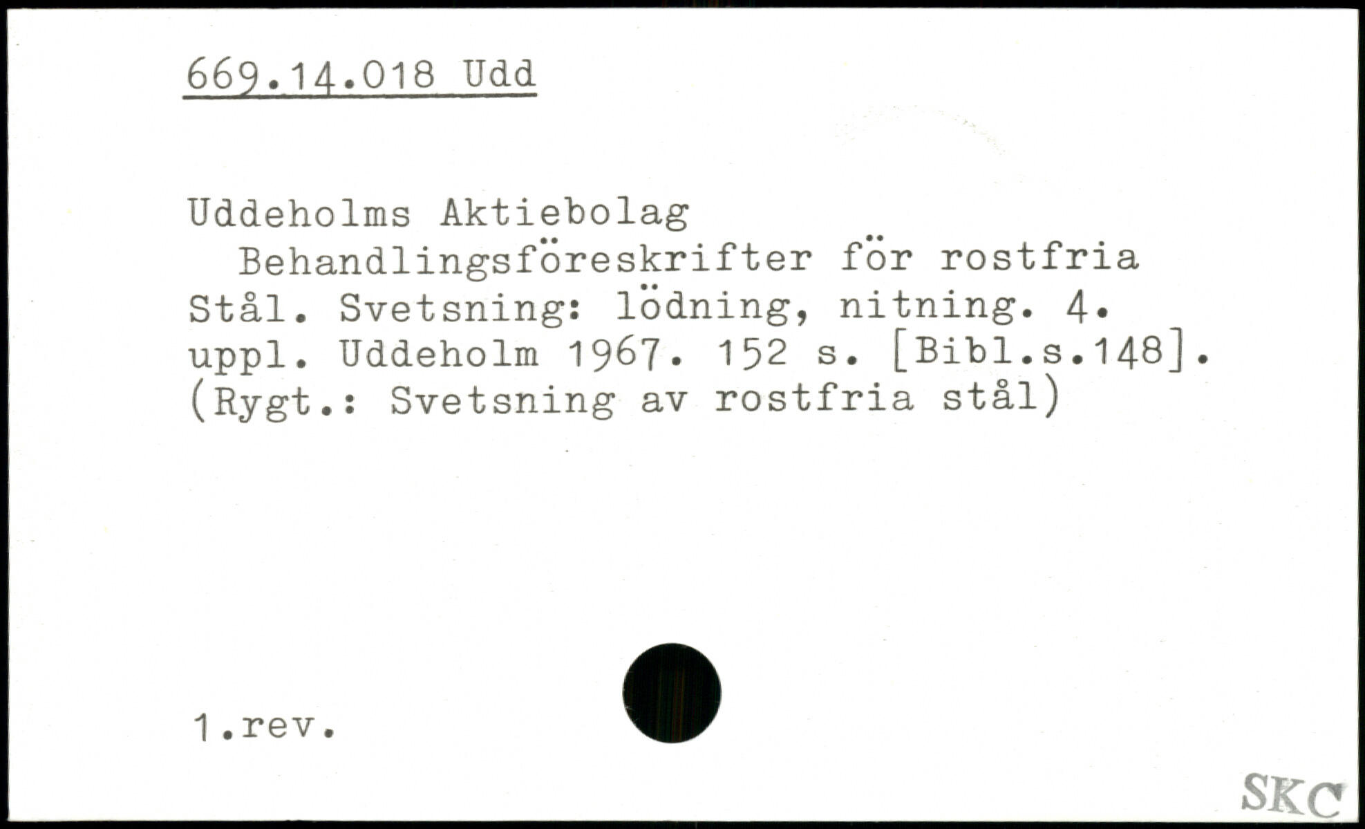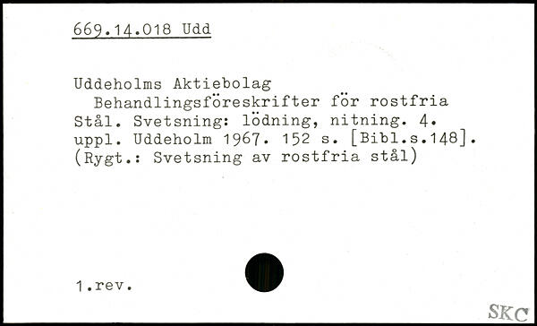 Uddeholms Aktiebolag Behandlingsföreskrifter för rostfria Stål. Svetsning: lödning, nitning.